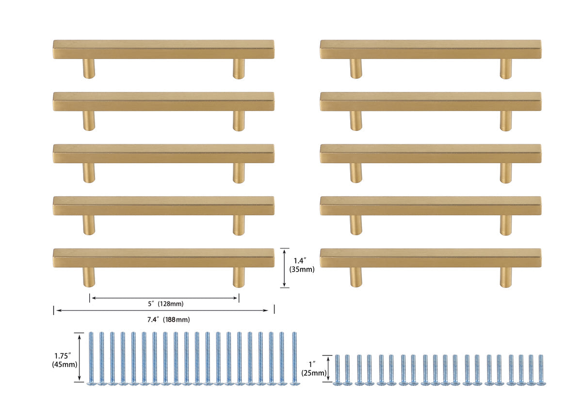 The stunning bar pulls are an instant dramatic upgrade to any kitchen, bathroom, or furniture. They are easy to install and provides a bold statement to your furniture. Each of the hardware conveniently comes with two sets of mounting screws to save your time and trip to the hardware store. The ten pack hardware is packaged individually to protect scratches of your timeless investment during shipping.