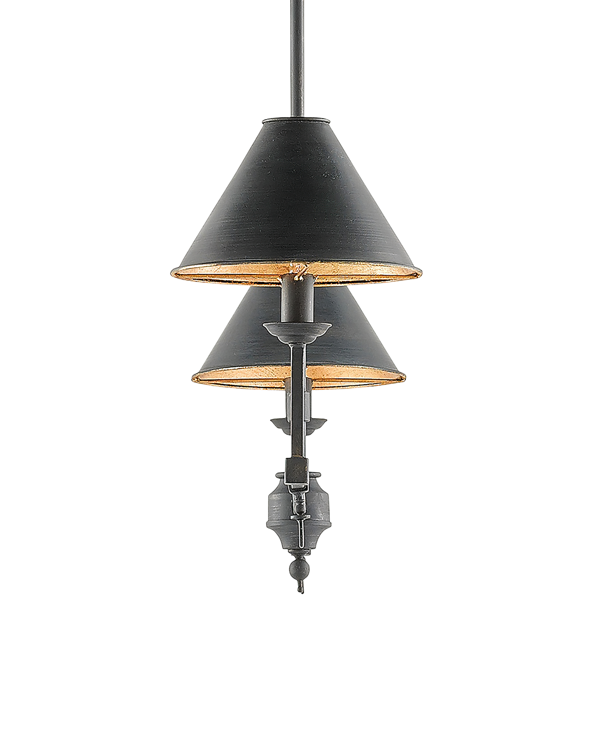 A modern take on the traditional gas light, the Prosperity Rectangular Chandelier has a block-accented frame in a French black finish. The contemporary gold leaf finish on the interiors of the two shades brings an opulence to the illumination. Adjustable from 24.5" to 60.5" with use of included chain/rod kit/cable. If your space calls for a longer drop, additional chain/rods/cable is available for purchase.