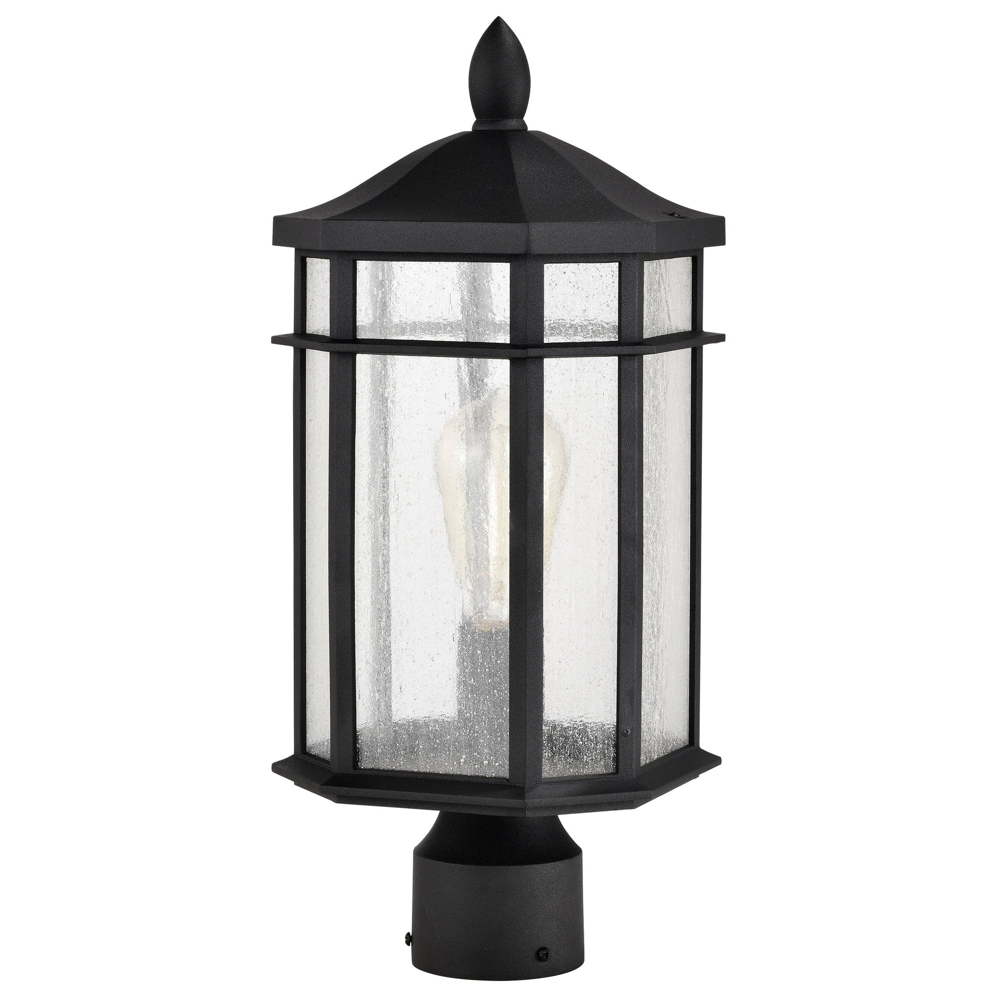 Raiden Collection Outdoor 18 inch Post Light Pole Lantern; Matte Black Finish with Clear Seedy Glass