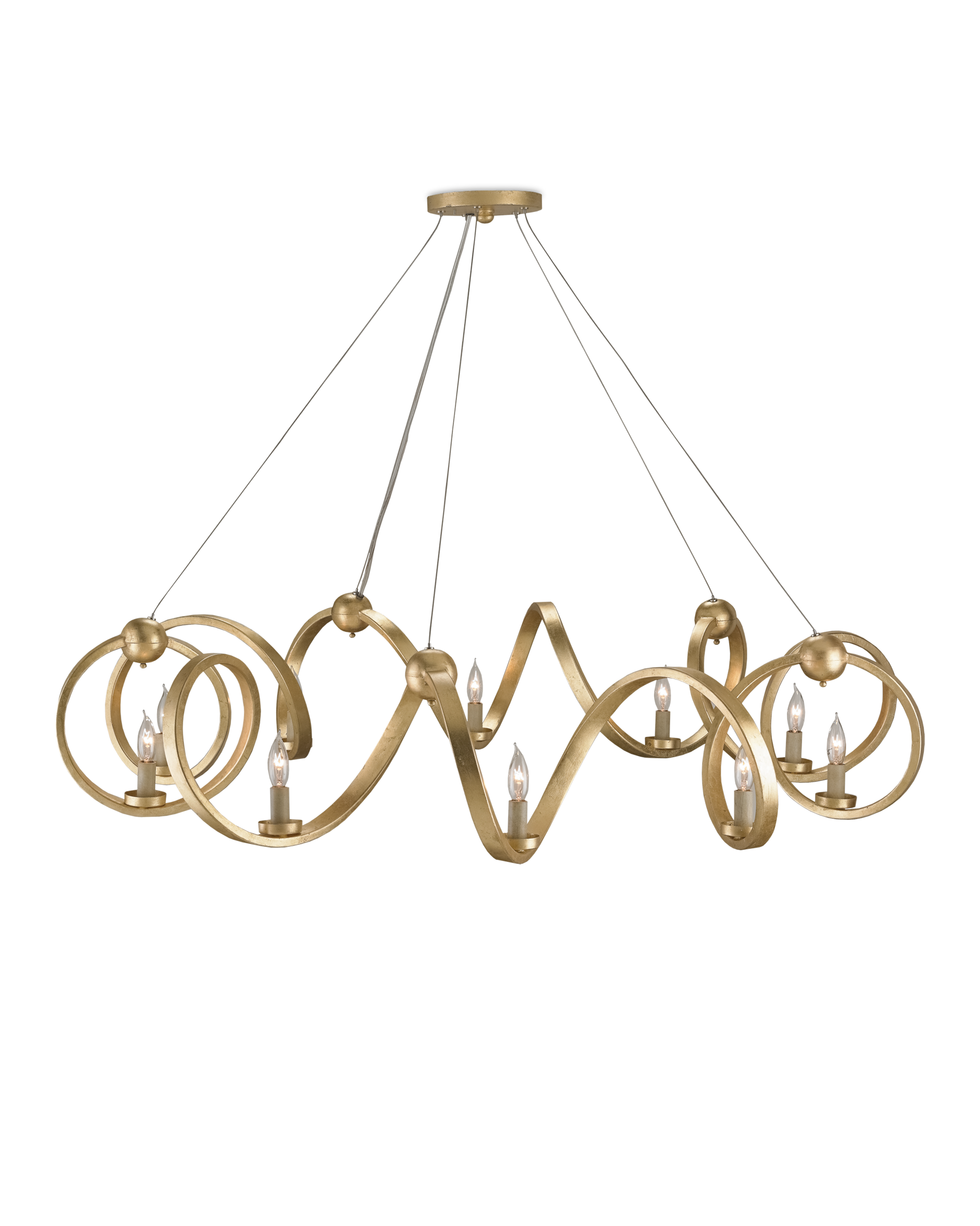 Our Ringmaster Gold Chandelier is cold-forged and requires a team of strong men to achieve its stellar design. A contemporary gold leaf finish and ten lights provide the ultimate in illumination emanating from the undulant fixture. Adjustable from 30" to 132" with use of included chain/rod kit/cable. If your space calls for a longer drop, additional chain/rods/cable is available for purchase.
