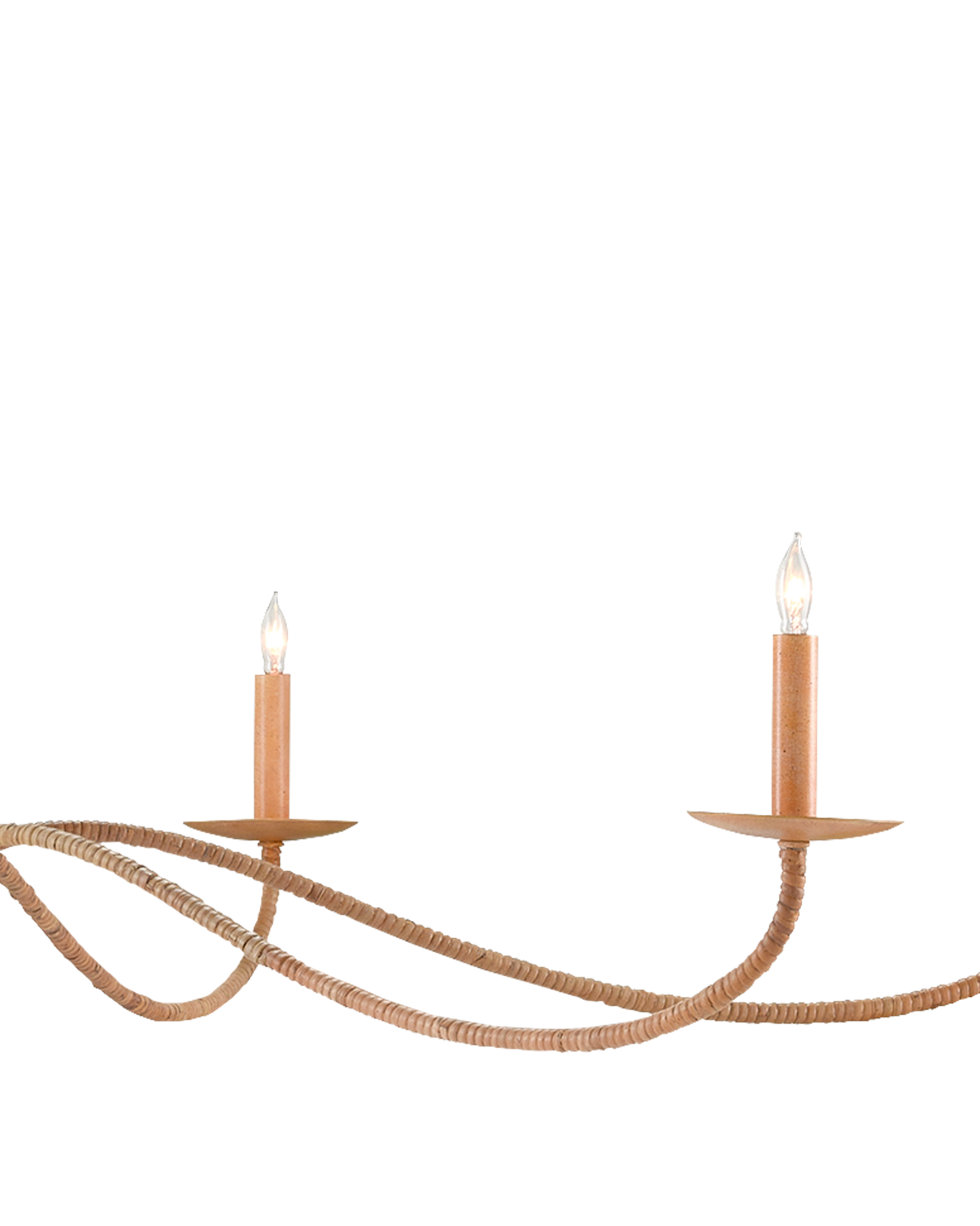 The Saxon Large Tan Chandelier is a monumental rattan chandelier that joins the black and silver versions of this long-standing popular design. Its shape is a nod to a bygone era, but its slender lines that arc gracefully and the natural rattan make its profile feel modern. Adjustable from 32.5" to 100.5" with use of included chain/rod kit/cable. If your space calls for a longer drop, additional chain/rods/cable is available for purchase.