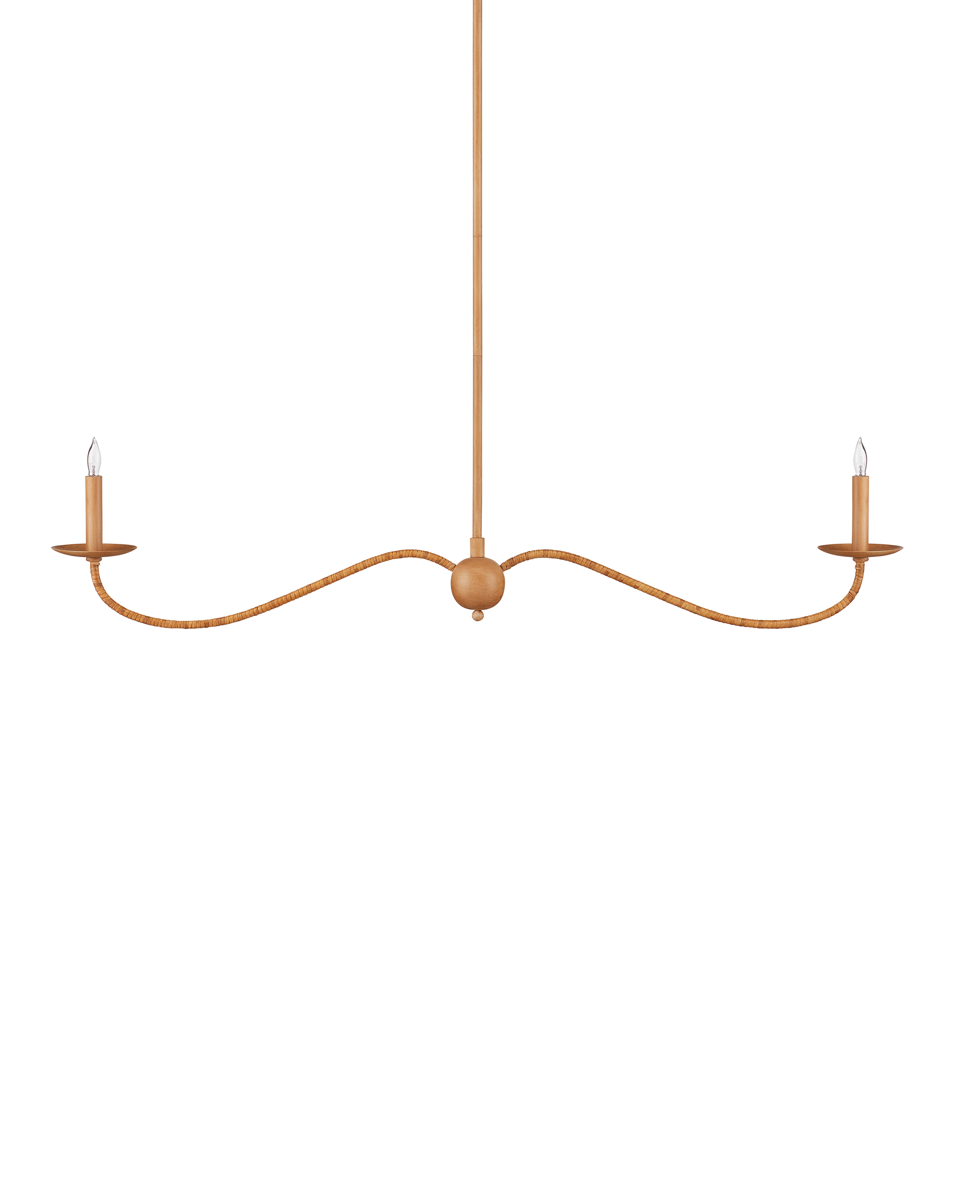 The Saxon Linear Tan Chandelier has a shape that is a nod to a bygone era, but its slender lines that arc gracefully and the natural rattan wrapped around it make its profile feel modern. Its reach makes it perfect for above kitchen islands and bars. The stylistic notes it exudes include traditional, transitional, and coastal chic. This is an artisanal piece, as the rattan is painstakingly wrapped by hand. Adjustable from 17" to 58.5" with use of included chain/rod kit/cable. If your space calls for a longer drop, additional chain/rods/cable is available for purchase.