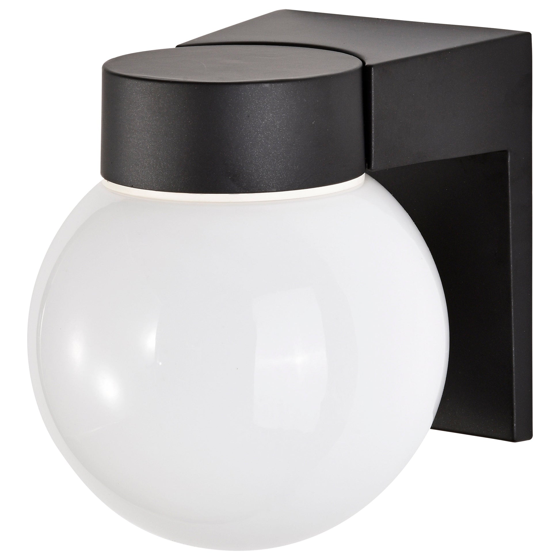 1 Light - 8" - Utility; Wall Mount - With White Glass Globe - Satin Aluminum Finish