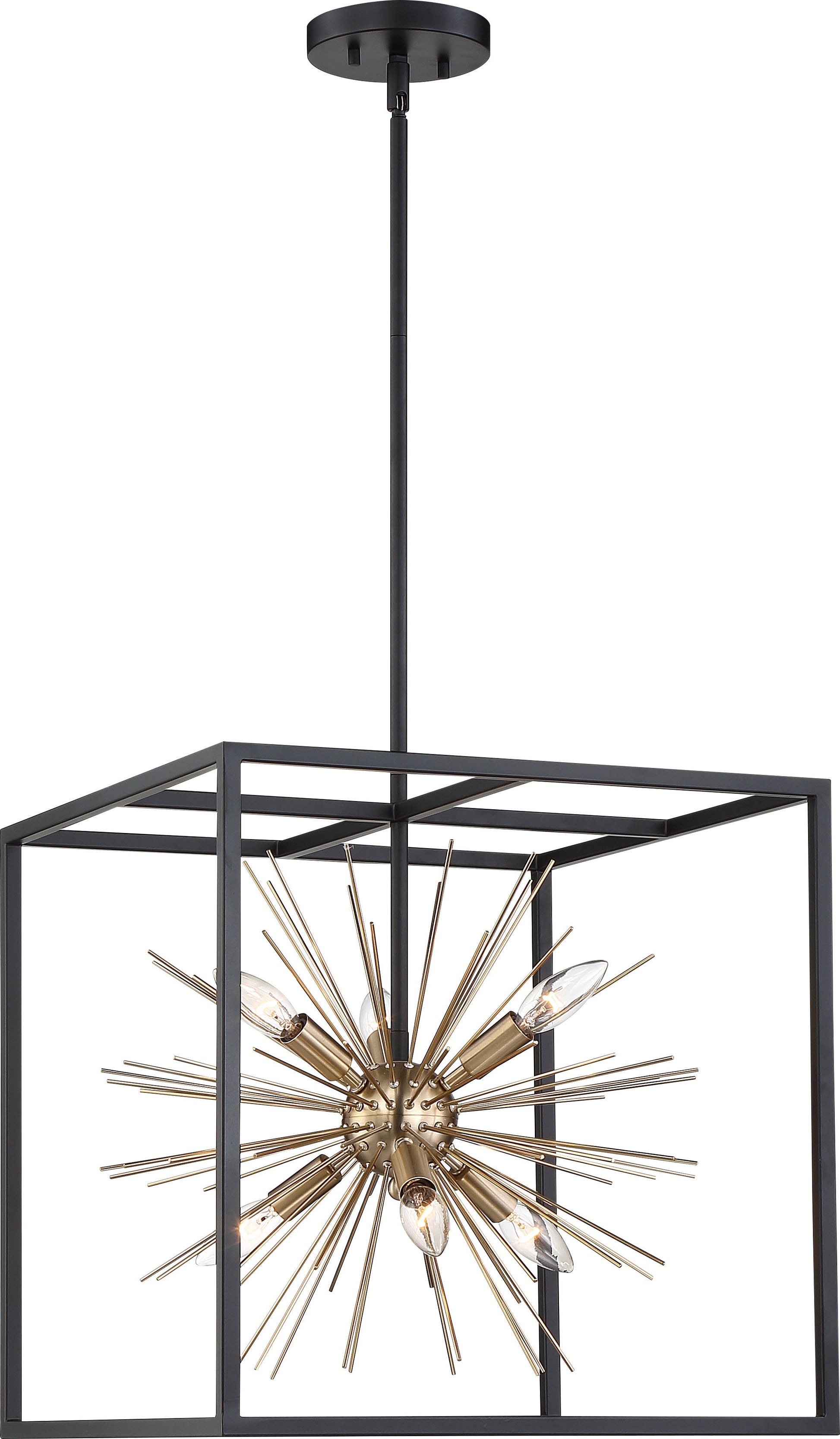 Spirefly; 6 Light; Pendant Fixture; Matte Black and Burnished Brass Finish