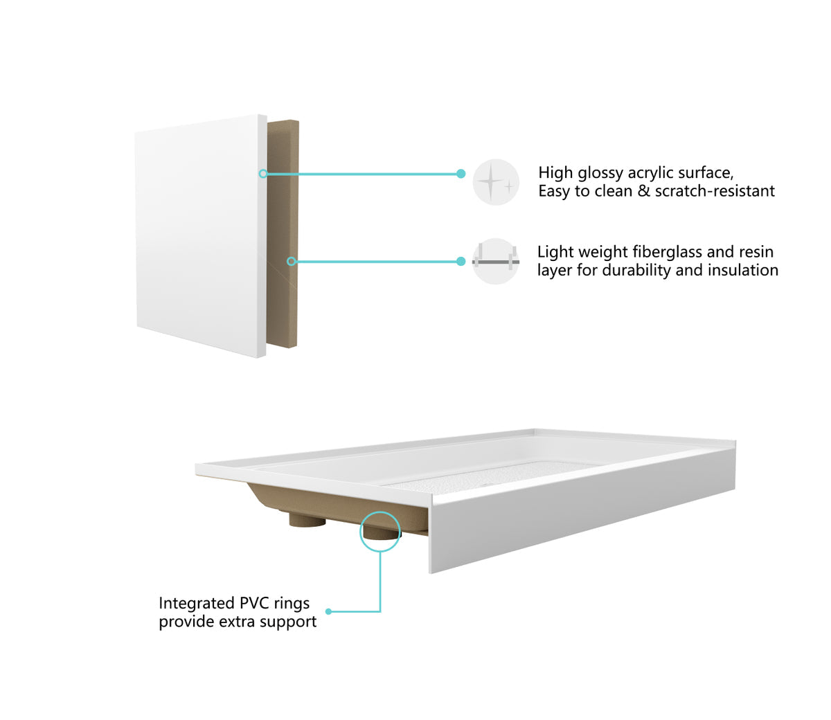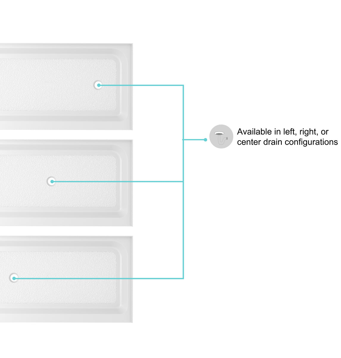 Upgrade your bathroom with our acrylic single threshold alcove shower base in glossy white and enjoy the perfect blend of style, safety, and quality for years to come! This rectangular masterpiece not only adds a touch of contemporary luxury to your space but also ensures top-notch safety and durability. Available in multiple sizes and three drain configurations (left, right, and center).
