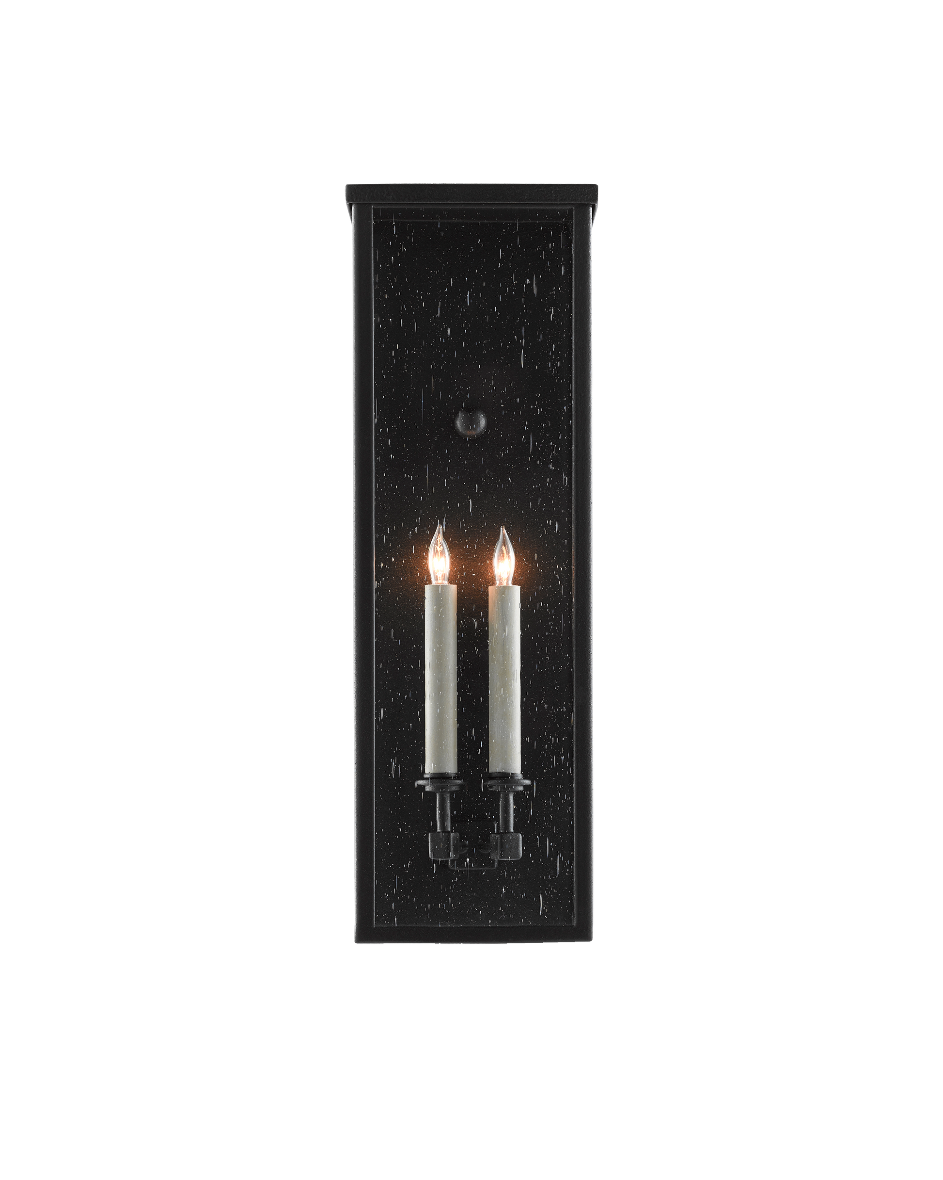 The Tanzy Medium Outdoor Wall Sconce in our Twelfth Street collection of outdoor lighting features a high-performance, weather-resistant Trilux finish that is fade resistant, crack resistant and rust resistant. We guarantee the finishes applied to our Twelfth Street pieces for five years. The metal on this black post light in a midnight finish surrounds seeded-glass panes. It is certified for outdoor and damp locations.