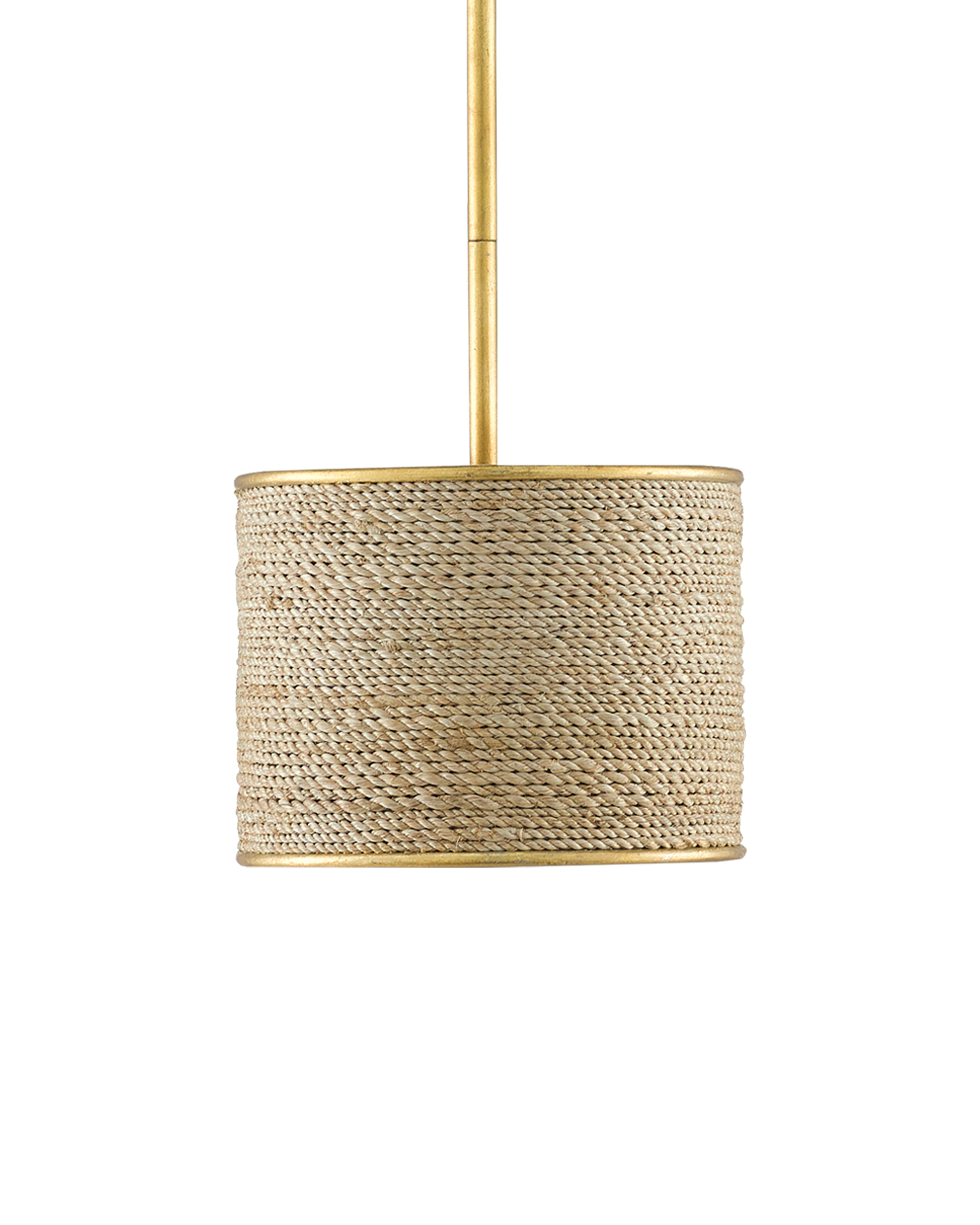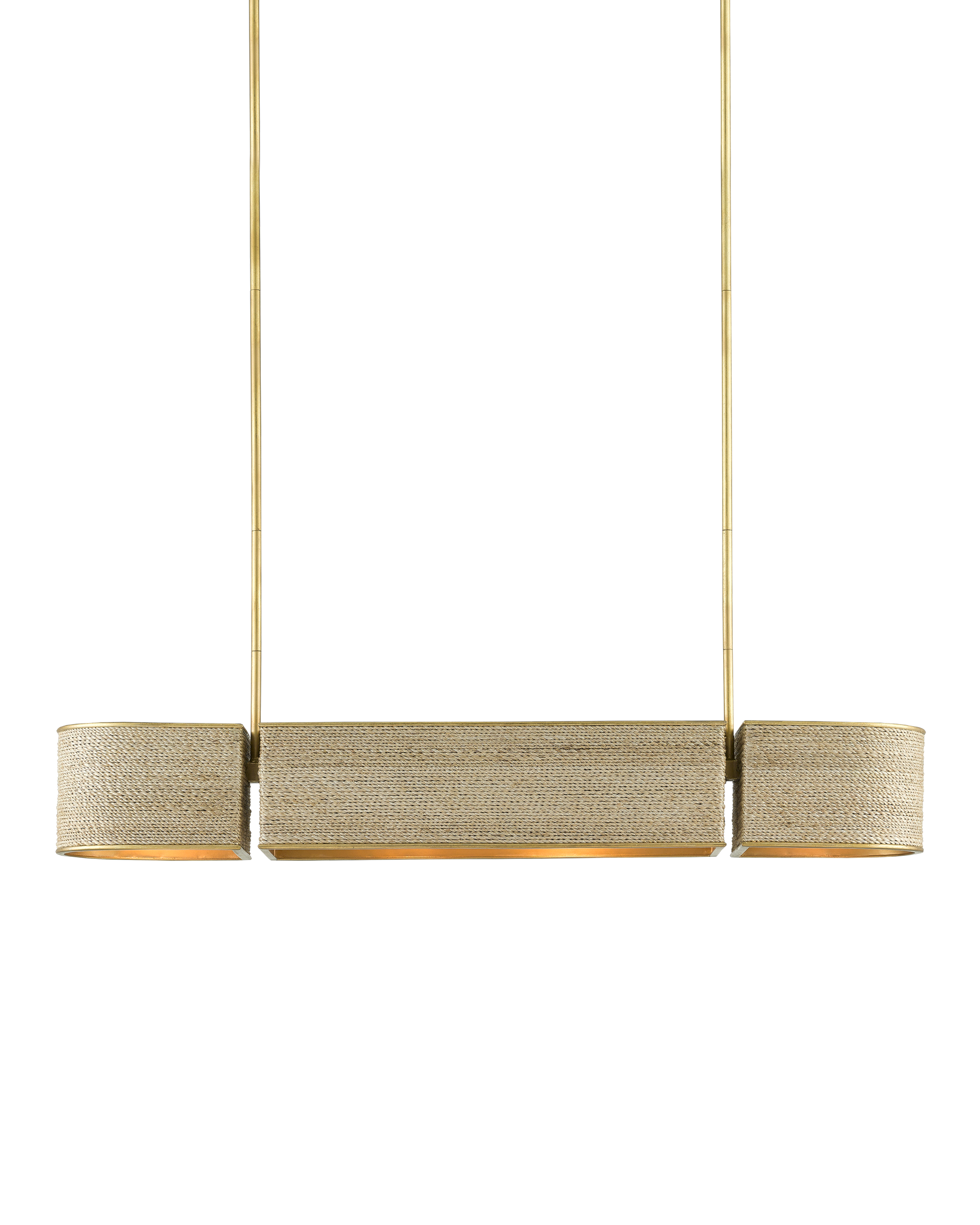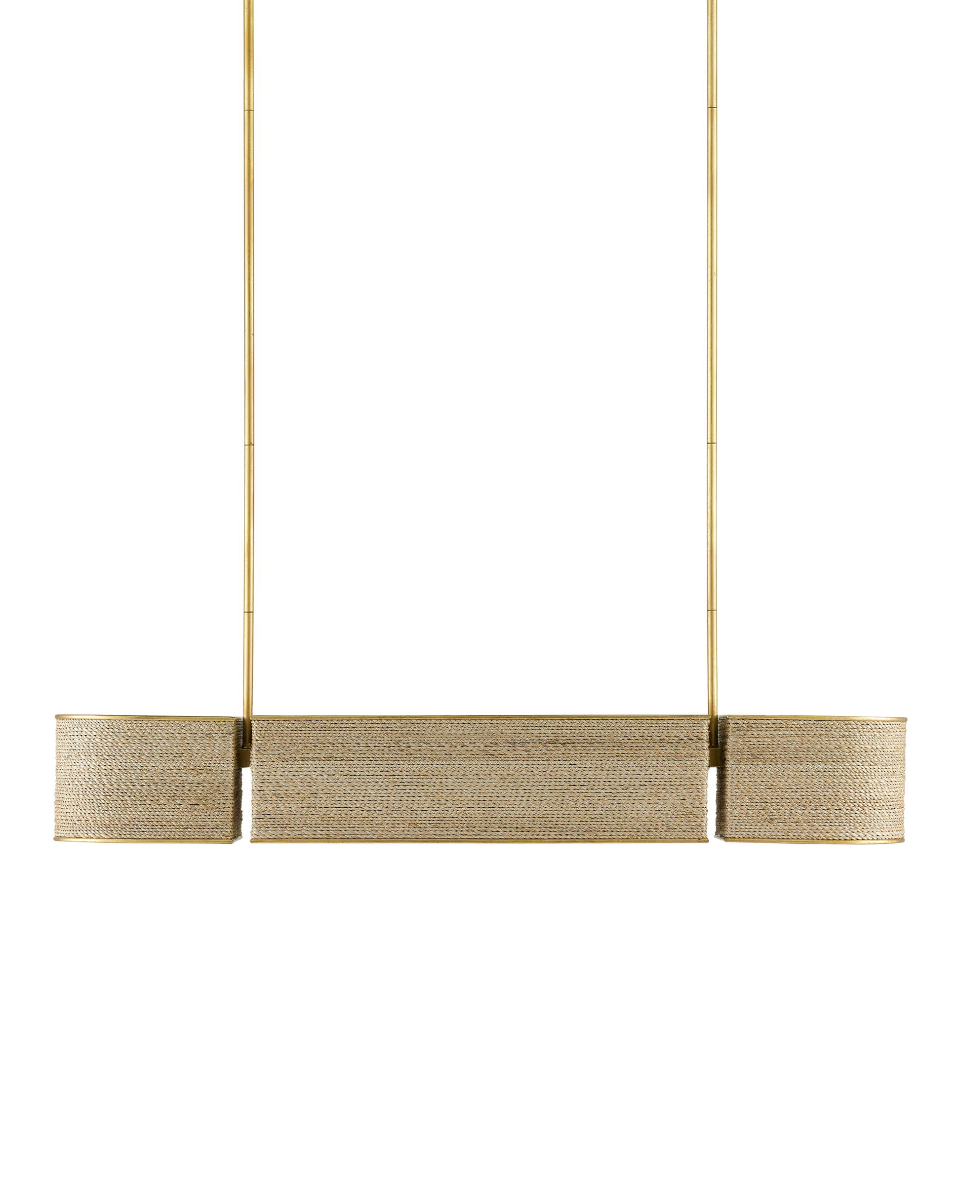 Tom Caldwell says of his design of the Tenby Oval Chandelier, "This rope chandelier was created in a manner that makes it appear to have three floating components. This all-metal construction is covered in a natural rope/twine material and all of the exposed metal is finish in gilded gold. It has a very warm and natural feeling but offers a modern style." Adjustable from 13.5" to 55.5" with use of included chain/rod kit/cable. If your space calls for a longer drop, additional chain/rods/cable is available for purchase.