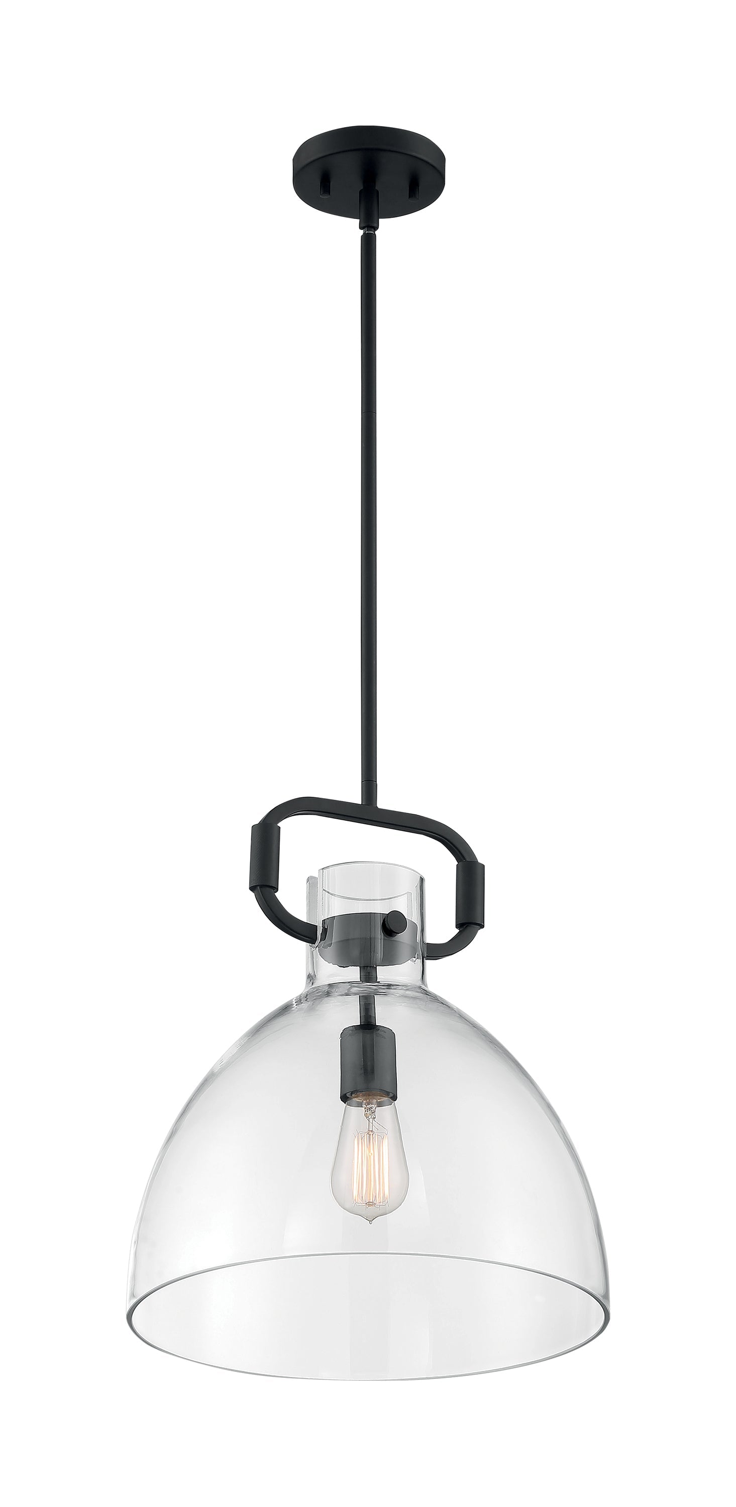 Teresa; 1 Light; Bell Pendant Fixture; Matte Black Finish with Clear Glass