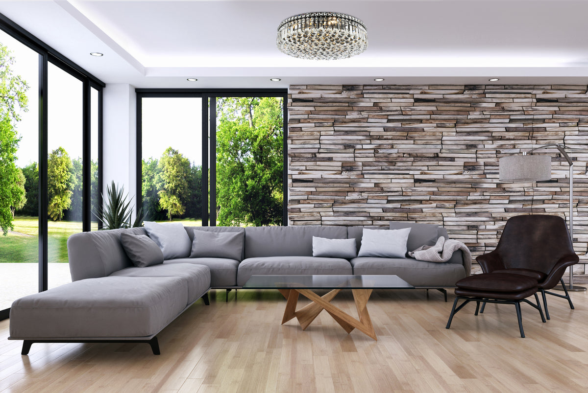 A riot of shapes and textures, Maxime collection flush mounts sparkle in a mosaic of crystal tiles. Square and rectangular precision-cut crystals form the flamboyant exterior while faceted crystal balls create a bubbled effect for light to shine through beneath. Available in a black or chrome finish with clear crystals, these lamps are a luxurious addition to a kitchen, stairwell, foyer, or living room.