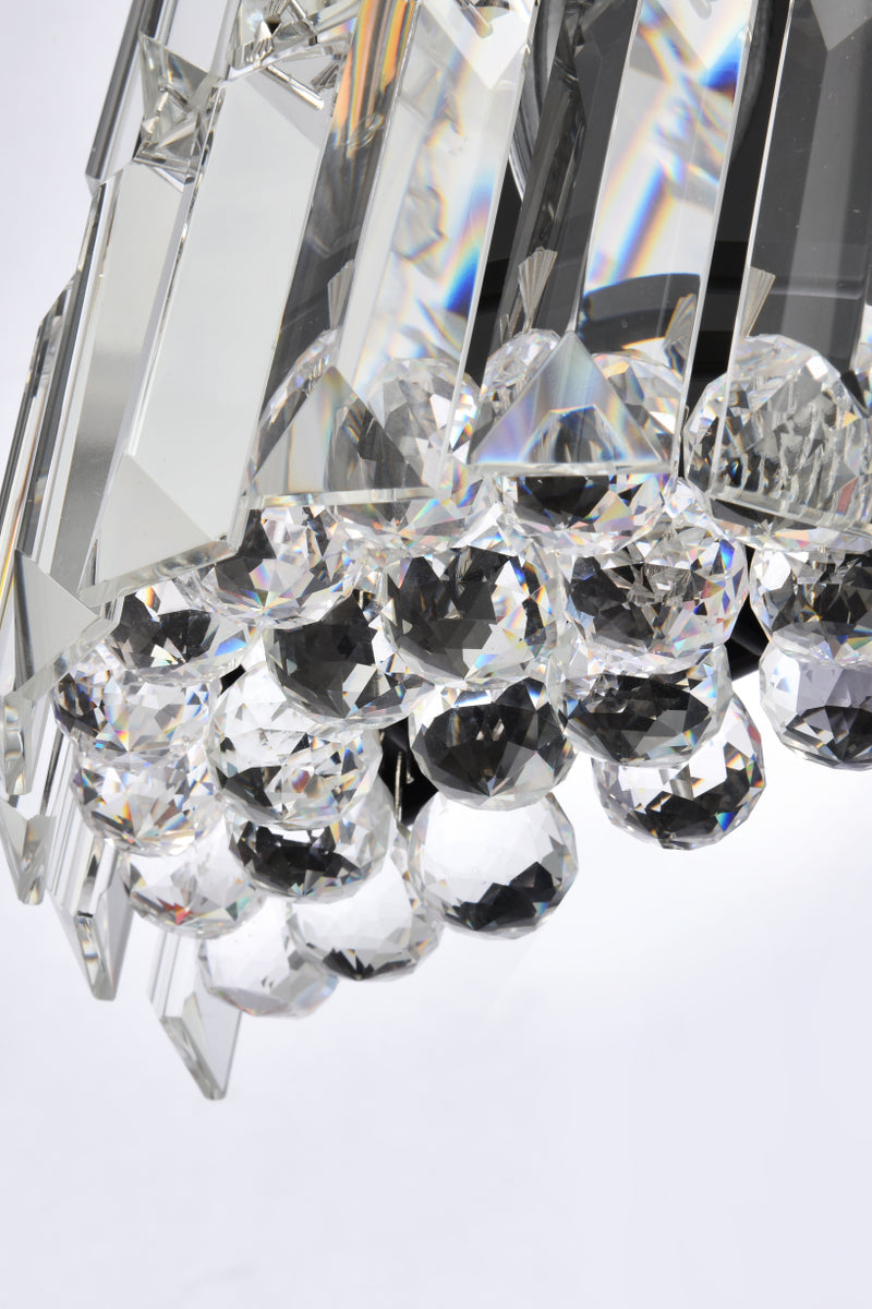A riot of shapes and textures, Maxime collection wall sconces sparkle in a mosaic of crystal tiles. Square and rectangular precision-cut crystals form the flamboyant semicylindrical or rectangular exterior while faceted crystal balls create a bubbled effect for light to shine through beneath. Available in a black or chrome finish with clear crystals, these lamps are a luxurious addition to a bathroom, entryway, or kitchen.