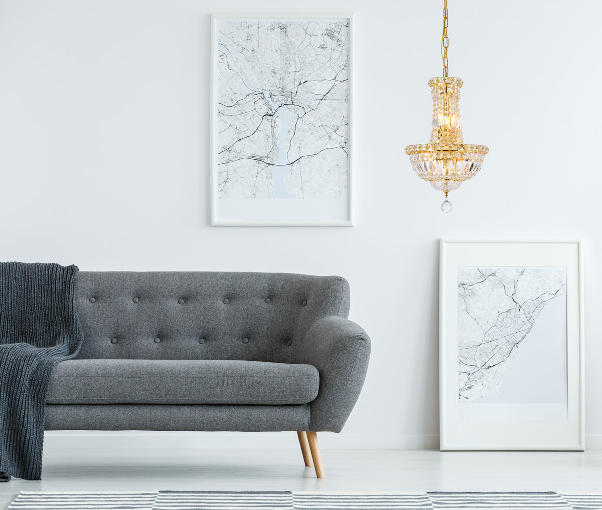The Tranquil collection of hanging fixtures is everything you could imagine in the most decadent of lighting for your home. Captivating and serene, the radiance of this masterpiece will make you feel like a waterfall of lustrous sparkle enraptures you. Gold-finished bands of exquisite emerald-cut and baguette crystals are finished off with a mesmerizing spherical gem. These hypnotizing chandeliers and hanging pendants will add a touch of panache to your kitchen, dining room, foyer, or bedroom.