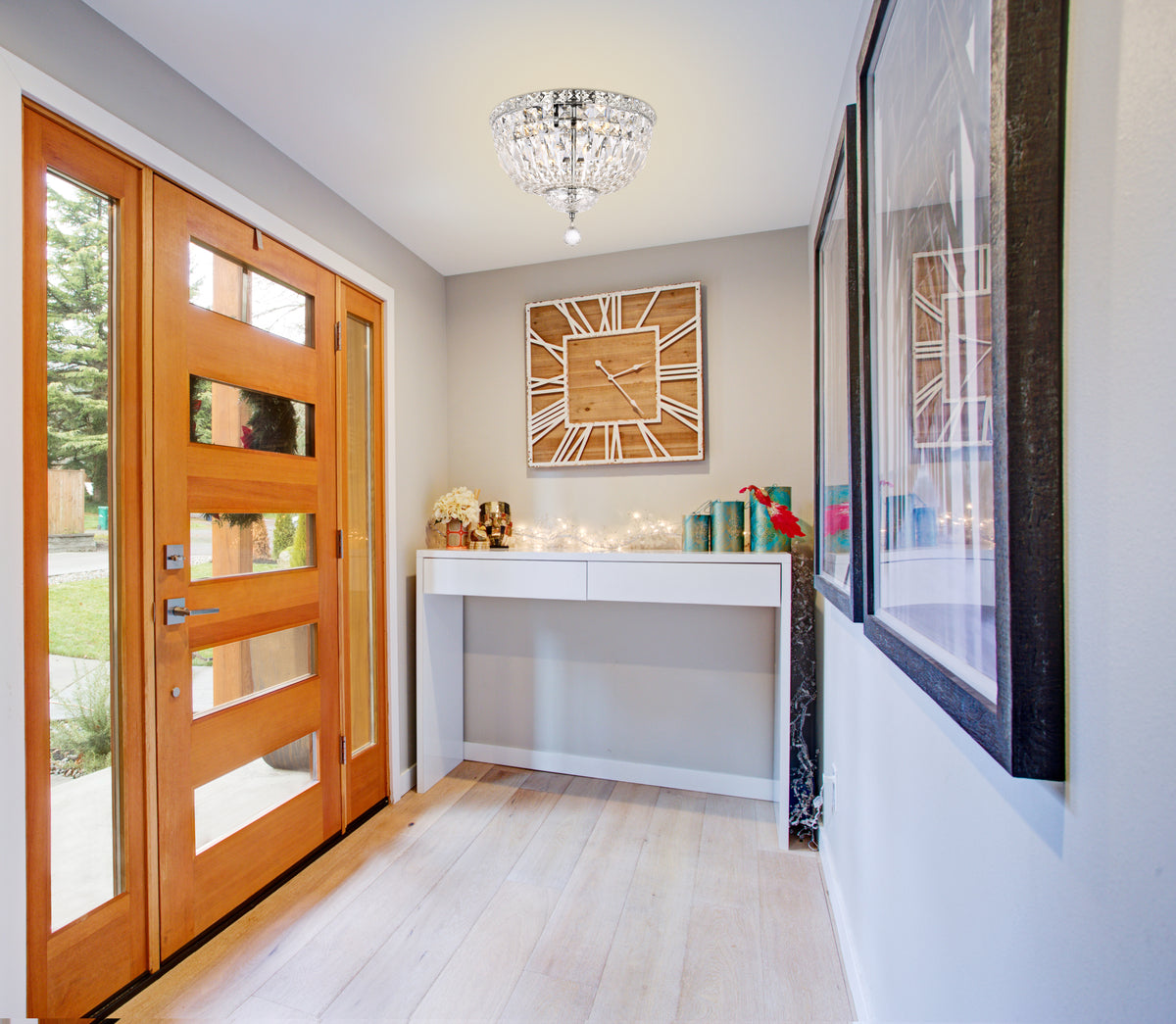 The Tranquil collection of flush-mount fixtures is everything you could imagine in the most decadent of lighting for your home. Captivating and serene, the radiance of this masterpiece will make you feel like a fireball of lustrous sparkle enraptures you. Chrome-finished bands of exquisite emerald-cut and baguette crystals are finished off with a mesmerizing spherical gem. These hypnotizing fixtures will add a touch of panache to your kitchen, dining room, foyer, or bedroom.