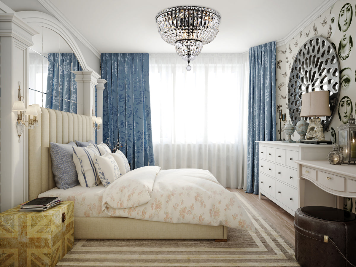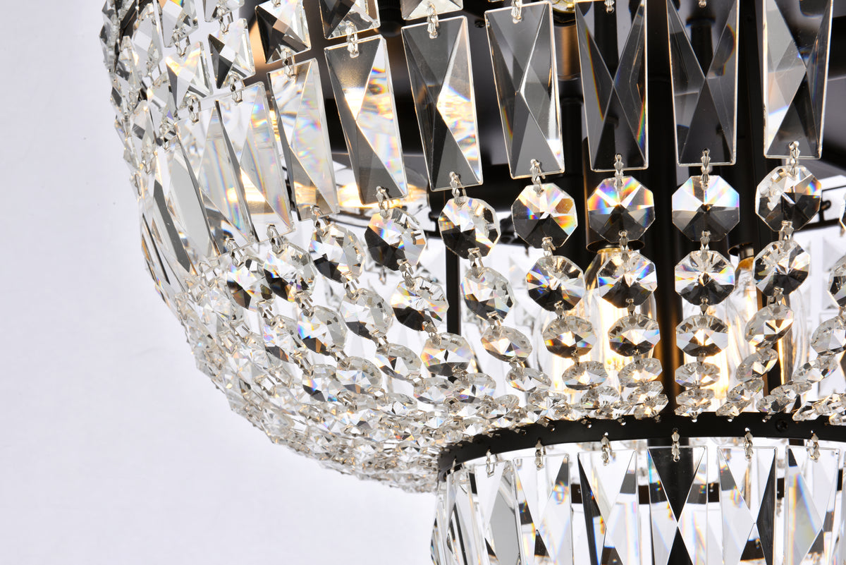 The Tranquil collection of flush-mount fixtures is everything you could imagine in the most decadent of lighting for your home. Captivating and serene, the radiance of this masterpiece will make you feel like a fireball of lustrous sparkle enraptures you. Black-finished bands of exquisite emerald-cut and baguette crystals are finished off with a mesmerizing spherical gem. These hypnotizing fixtures will add a touch of panache to your kitchen, dining room, foyer, or bedroom.
