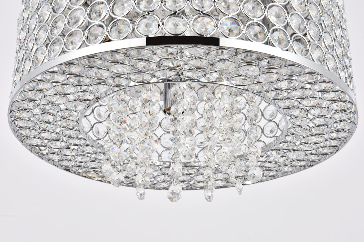 Like a brilliant shining star, the Amelie collection of hanging fixtures emits dazzling light from a bejeweled circular band, accented with gleaming strands of royal-cut crystals pouring through the open center. This chrome-finished ring surrounds four to 10 lights (not included) that highlight the intricate pattern of miniature circles that embellish the sides and bottom of the frame. In natural light, or with electricity, this sparkling hanging light would become a stunning showpiece for your space.