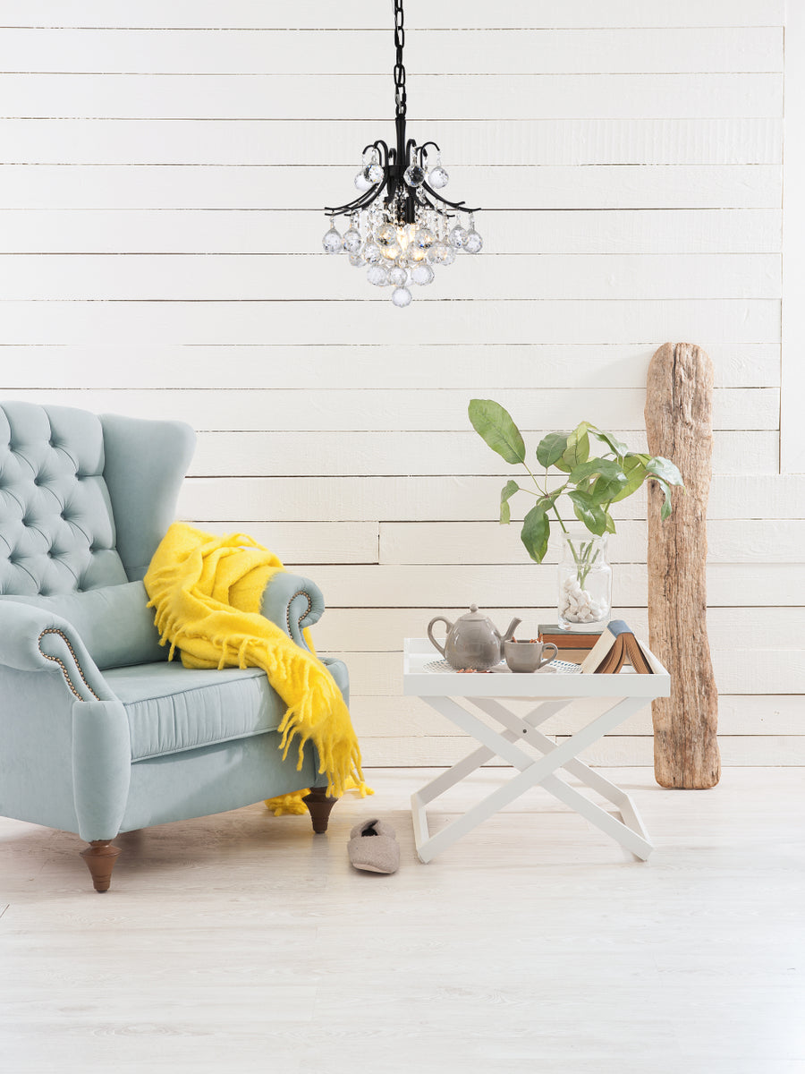A treasure trove of glittering crystals, Toureg collection pendant lamps are generous with their sparkle. Stately curved steel arms and frame form an opulent flared shape available in black, chrome or gold finishes. Faceted clear crystal balls and crystal octagons offer a variety of options to choose from. Certain to be the center of attention in the dining room, living room, bedroom, or stairwell.