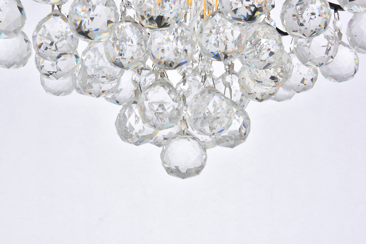 A blaze of radiance, Toureg collection flush mounts gleam with a shower of brilliant crystals. Elegant curved arms radiate from a steel frame available in black, chrome, or gold finishes. A choice of clear crystal octagons and faceted crystal balls make it a dazzling choice for a kitchen, dining room, or bedroom.
