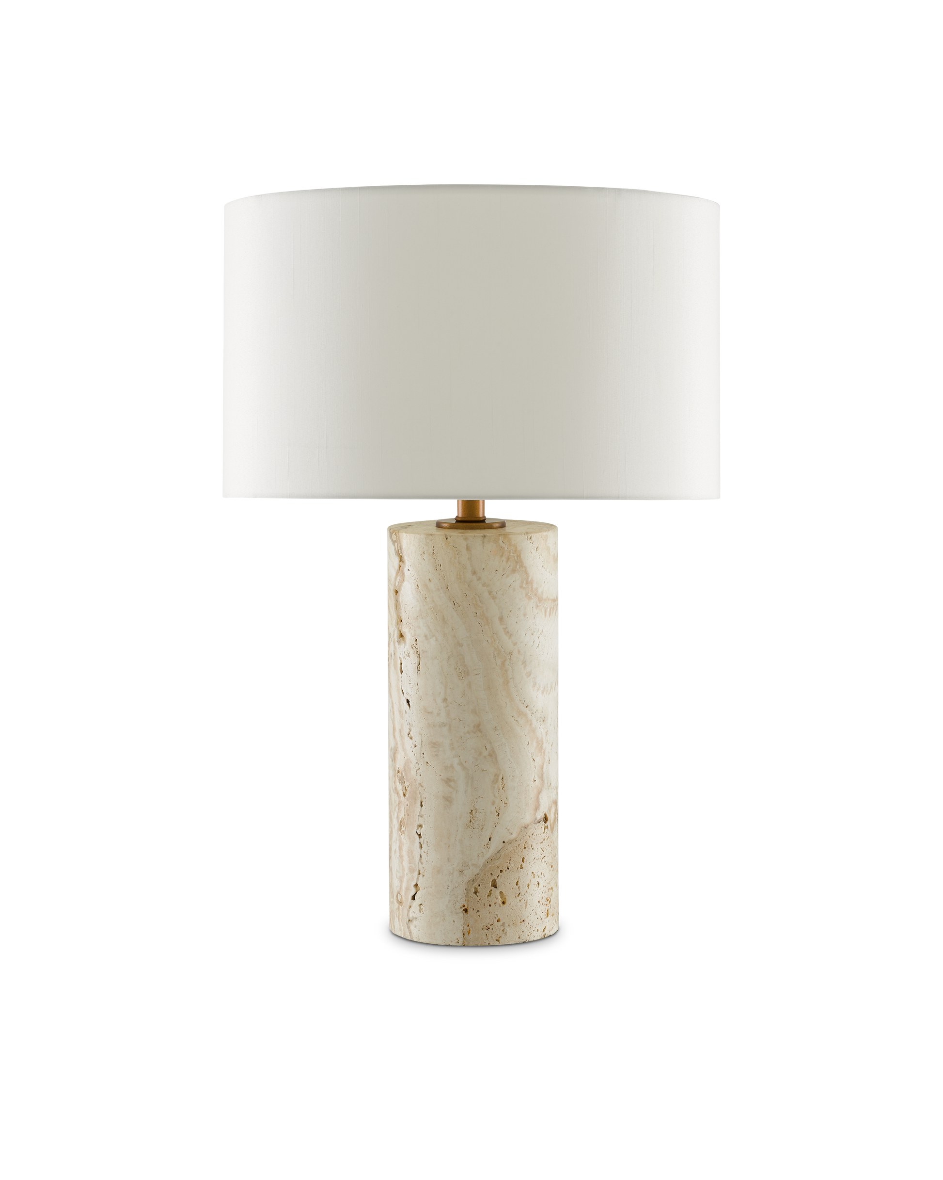 A tall column of swirling marble makes our Vespera Table Lamp a clean-lined luminary with loads of personality. The beige and tan veining will make each of these beige table lamps unique. The metal hardware in an antique brass finish draws out the darker tones in the lamp's body, while the off-white shantung shade echoes the pale tones in the lustrous marble.
