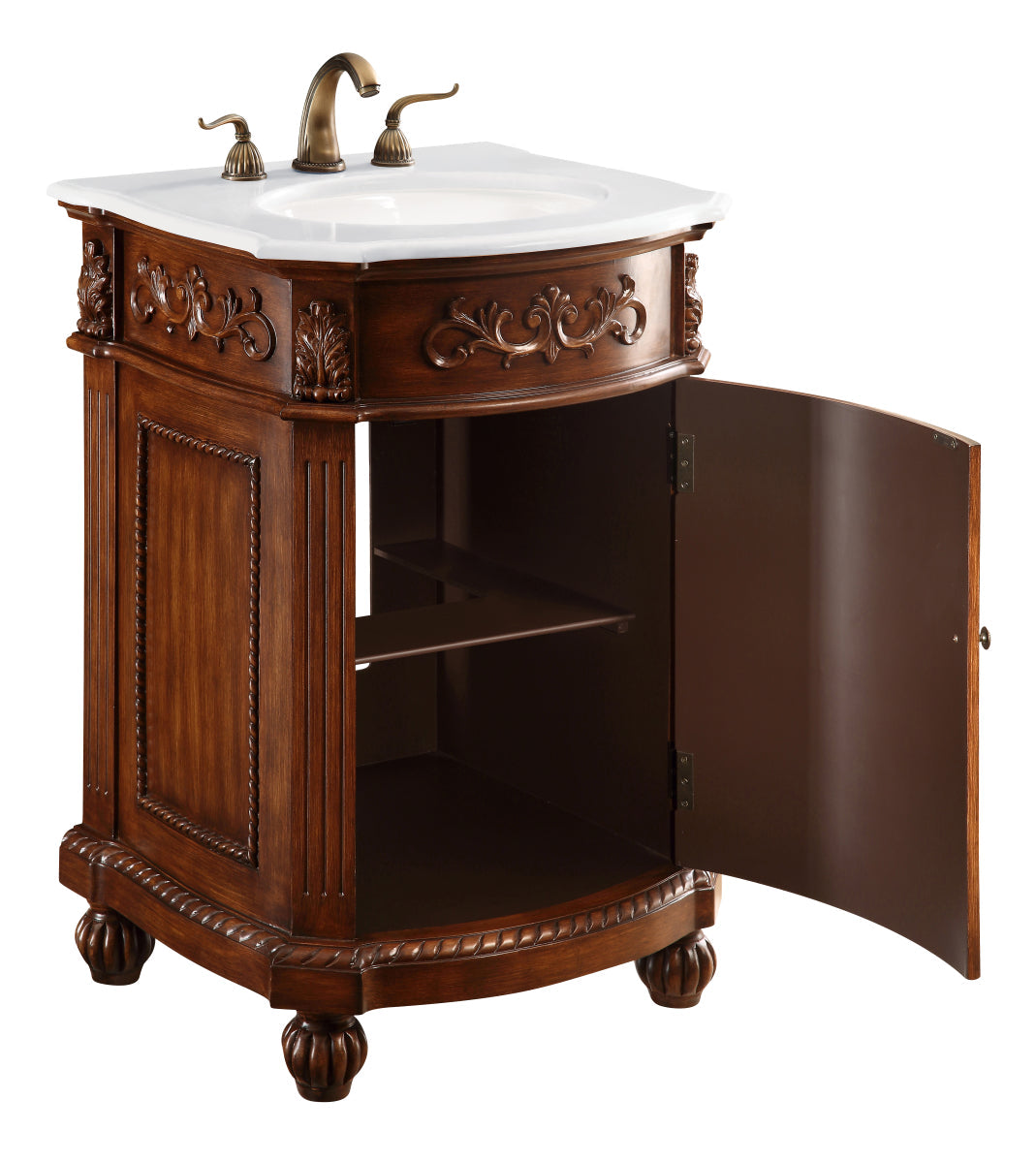 24 inch Single Bathroom vanity in Brown with ivory white engineered marble
