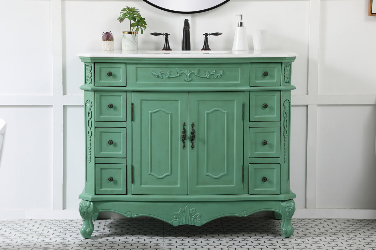 42 inch Single Bathroom vanity in vintage mint with ivory white engineered marble