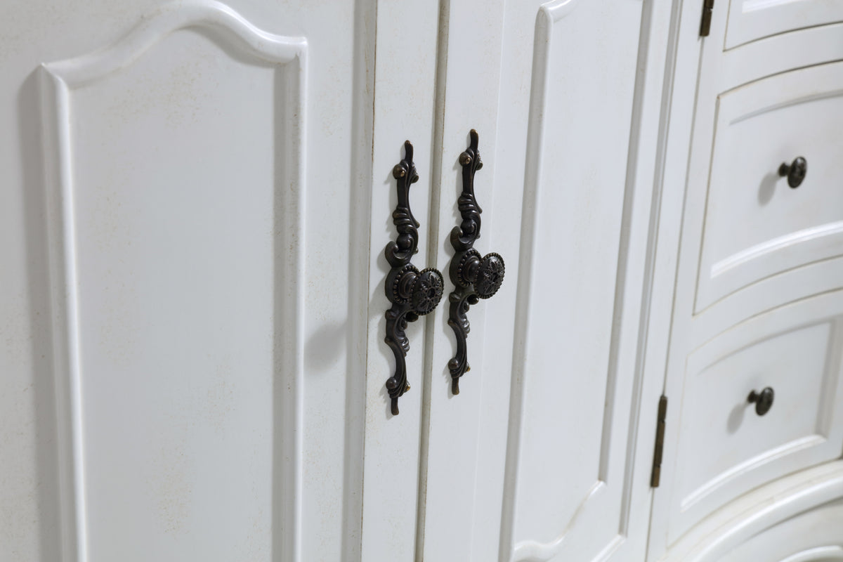 This superb balance of timeless tradition and opulent beauty in a engineered marble-topped vanity will certainly enhance the aesthetics of any home or office bathroom! Featuring an ivory white durable engineered marble countertop complimenting the hand painted cabinet with a delicate carved floral design, stands on stylishly carved solid wood French scroll feet. Don't let the design fool you, the engineered marble countertop and porcelain undermount sink allows for space to get ready, while the antique bronze hardware allows you to discover storage spaces with ease. You and your guests will marvel at this vanity that will both store away your bathroom essentials and enhance the aesthetics of your room.