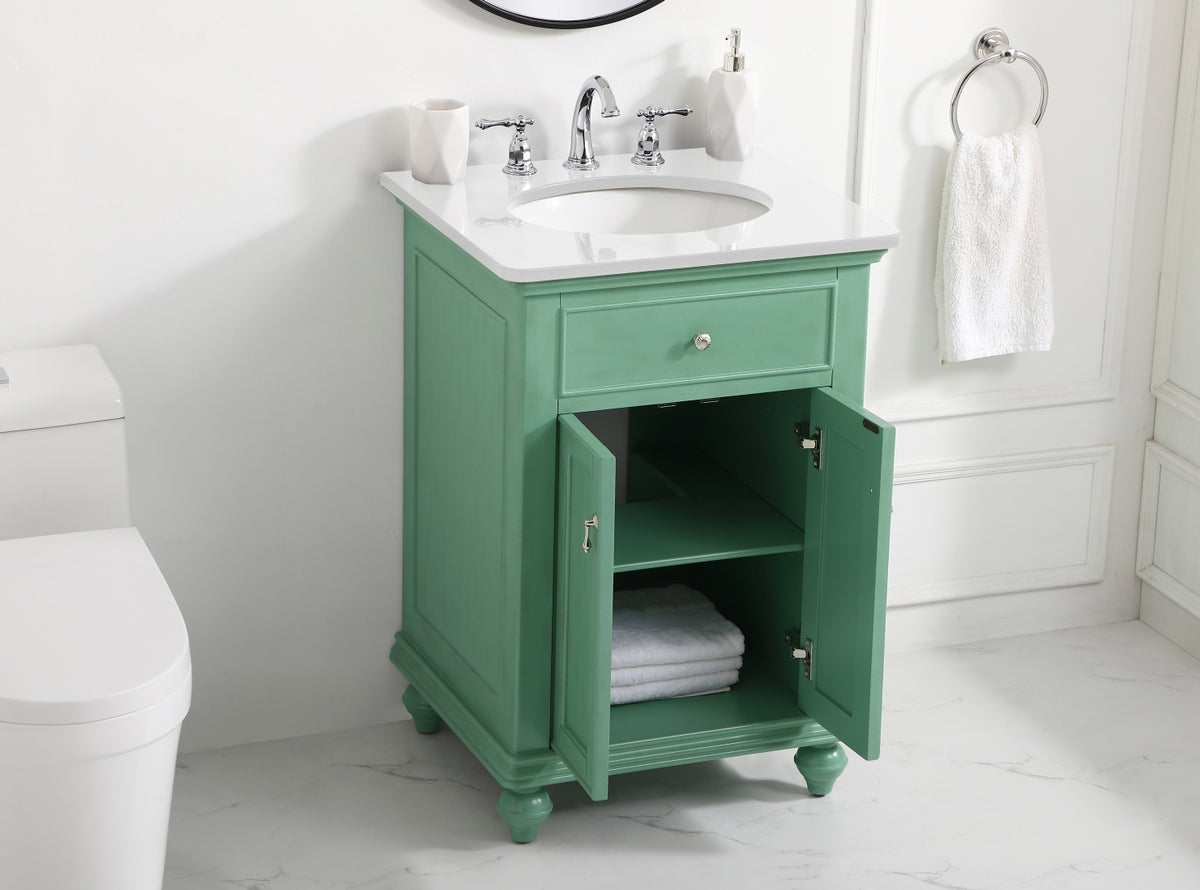 24 inch Single Bathroom vanity in vintage mint with ivory white engineered marble