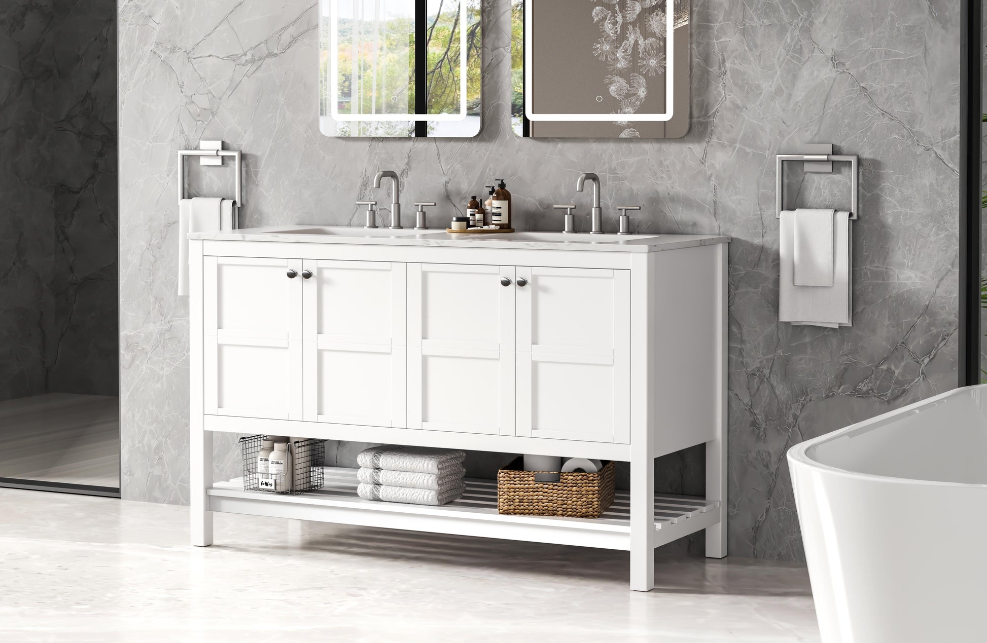 54 inch Double Bathroom Vanity in White