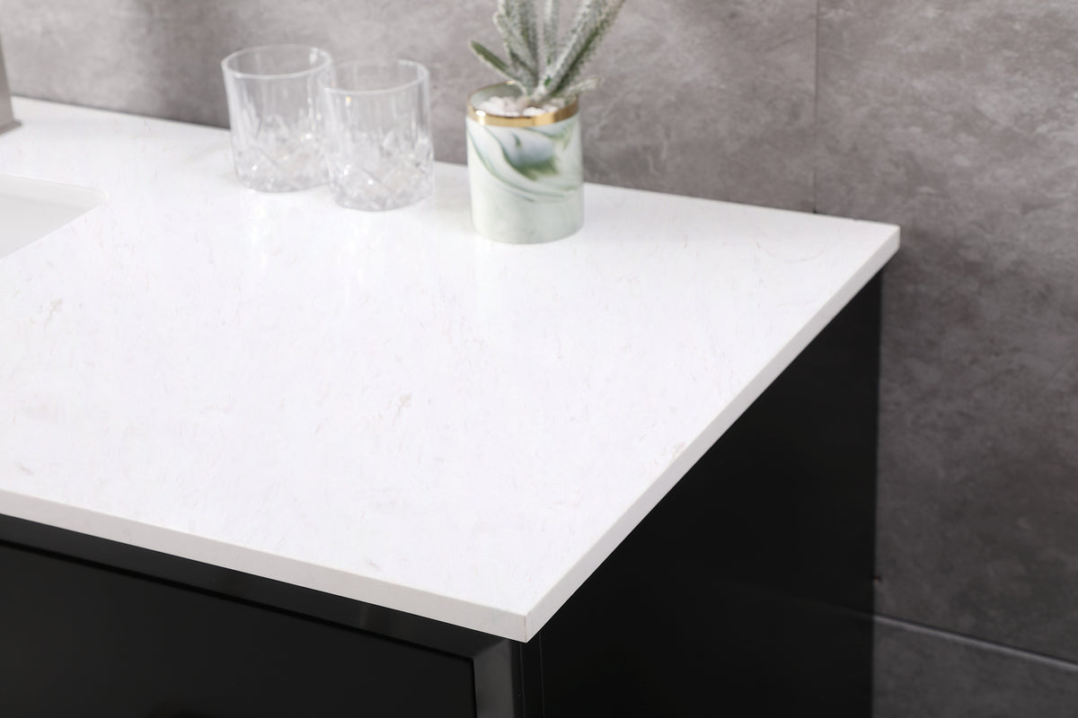 Step into a realm of modern luxury with our freestanding bathroom vanity, featuring a sleek and contemporary boxy design that sets new standards for aesthetics. The engineered marble countertop, with its crisp 0.75-inch straight edge, not only introduces sophistication but also ensures enduring durability. Convenience takes center stage with the undermount porcelain sink, measuring 15.35 inches long, 11 inches wide, and 7 inches deep, complemented by a single predrilled faucet hole for seamless installation. Experience the art of organization through soft-closing drawers and doors adorned with high-quality bar pulls, showcasing meticulous craftsmanship in the precision of butt joint drawers. The vanity, crafted from resilient MDF material, combines elegance with durability, supported by solid wood legs that provide stability and a touch of natural warmth. Elevate your bathroom with this distinctive piece, where the fusion of form and function creates a harmonious dance of modern sophistication, redefining your daily routine with a statement in style and practicality.