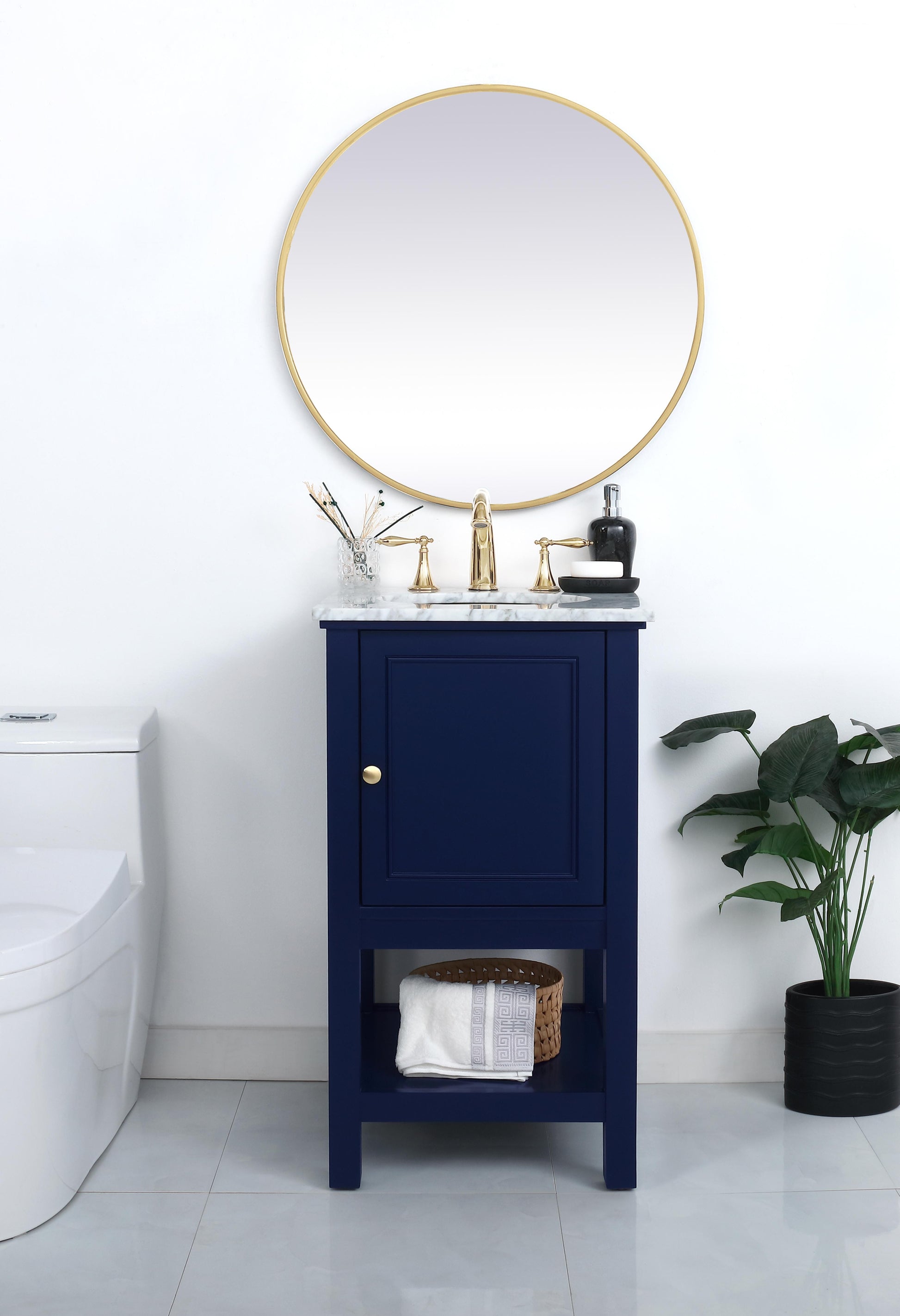 Create a refined and relaxing bath space with this contemporary design vanity, presenting its simplicity and clean straight lines in a minimalist appeal. The 18" vanity, crafted of solid poplar wood, provides ample storage within its soft-close cabinet door and open shelf base, accentuated with gold hardware. Rounding out the design is a luxurious Itallian Carrara white marble with a white porcelain under-mount oval sink.