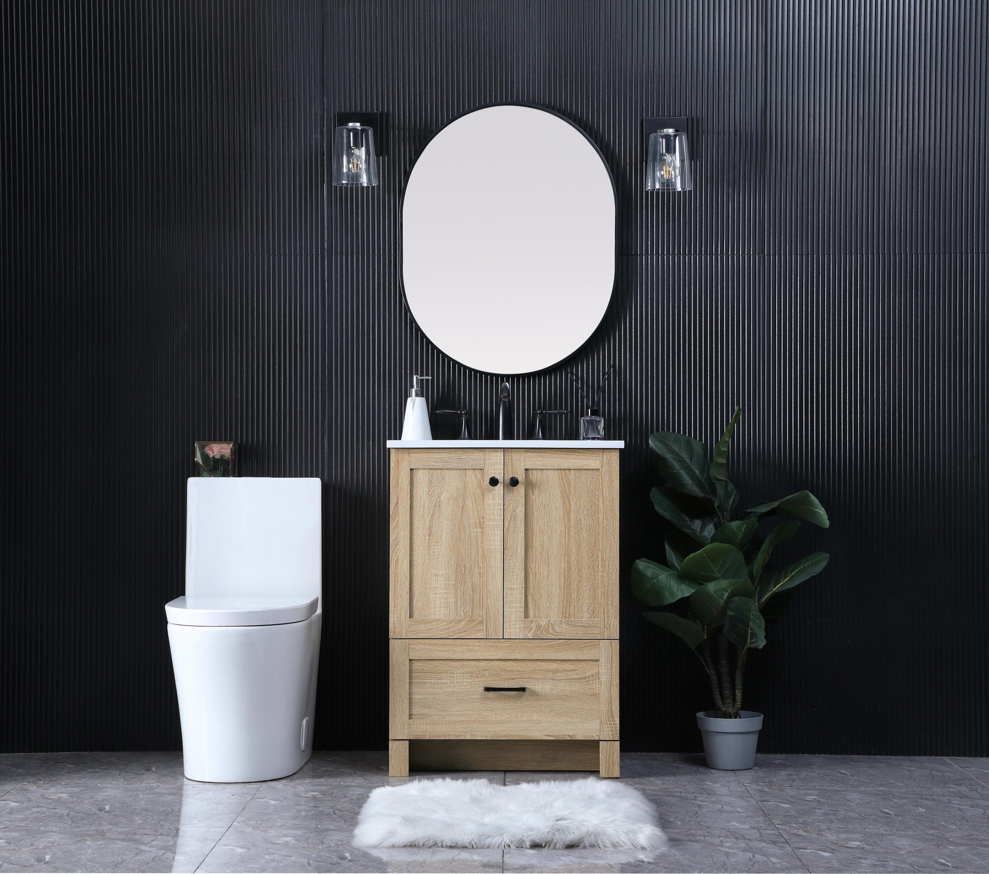 Elevate your bathroom with our sophisticated vanity featuring an engineered marble top in timeless ivory white. Designed for seamless elegance, it comes equipped with an undermount porcelain sink. Organizational bliss awaits with one drawer and a cabinet, all boasting smooth soft-close glides and hinges. Completing the picture of refinement, our vanity is tastefully adorned with sleek black hardware. Transform your space with this marriage of style and functionality.