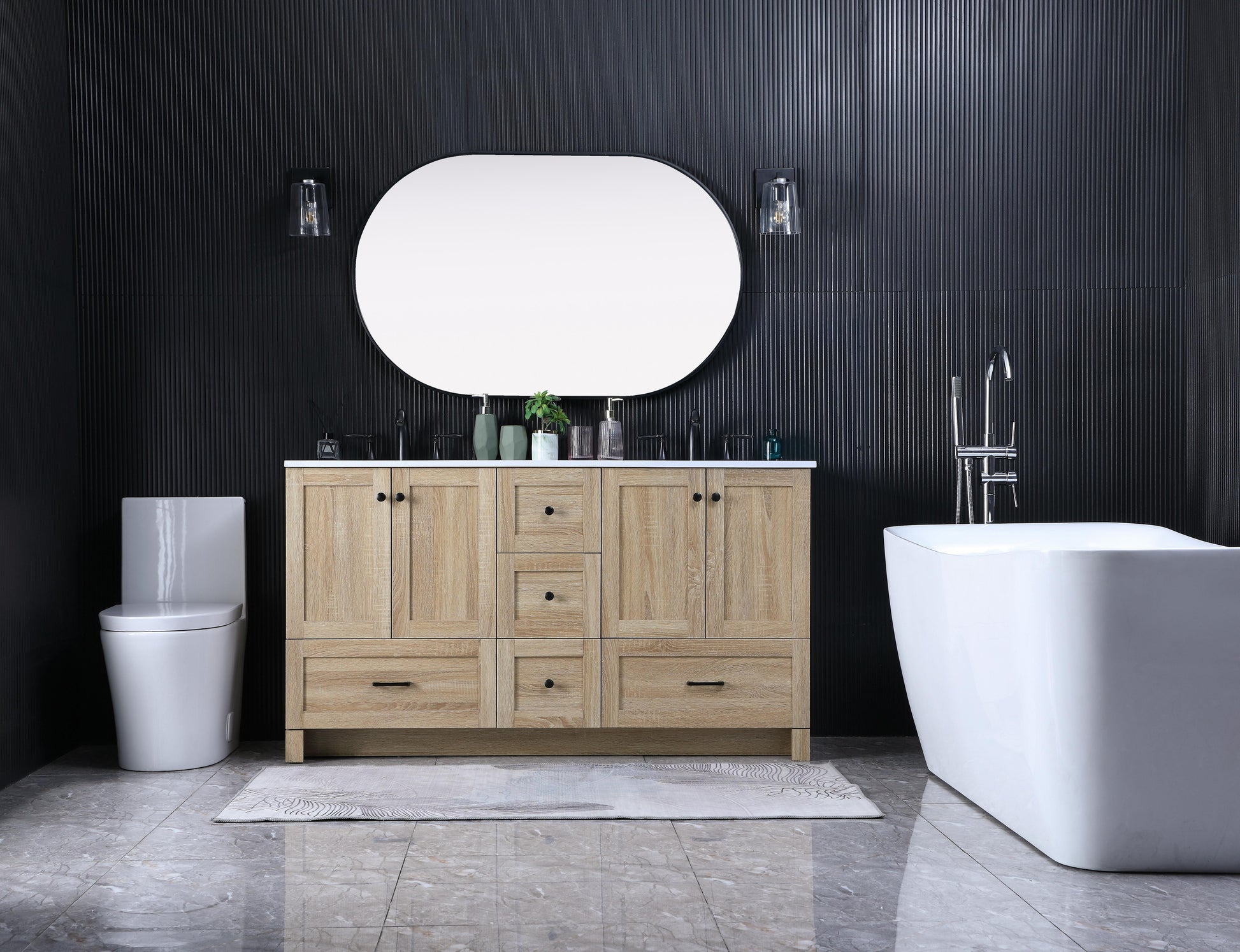 Elevate your bathroom with our sophisticated vanity featuring an engineered marble top in timeless ivory white. Designed for seamless elegance, it comes equipped with an undermount porcelain sink. Organizational bliss awaits with five drawers and two cabinets, all boasting smooth soft-close glides and hinges. Completing the picture of refinement, our vanity is tastefully adorned with sleek black hardware. Transform your space with this marriage of style and functionality.
