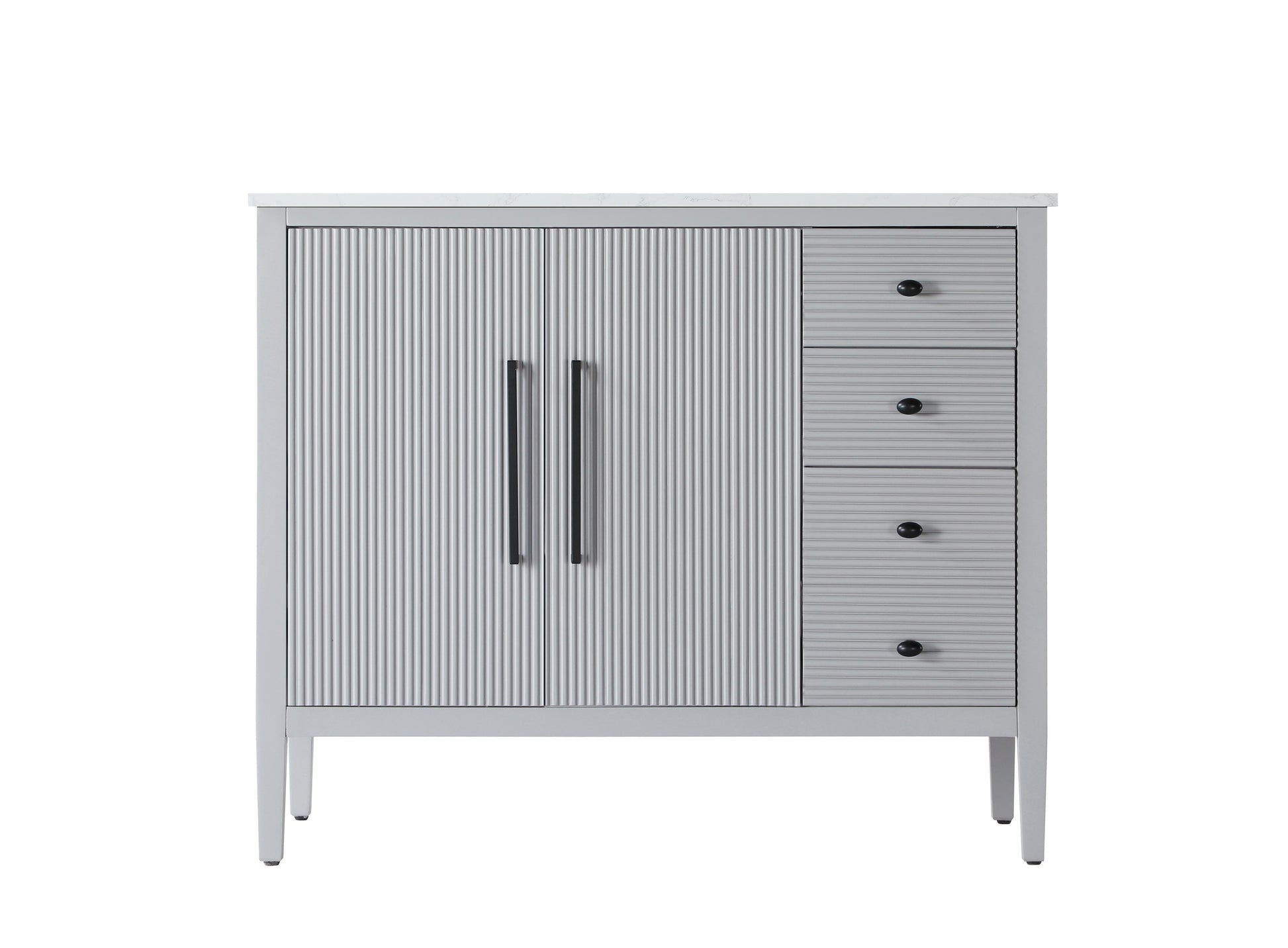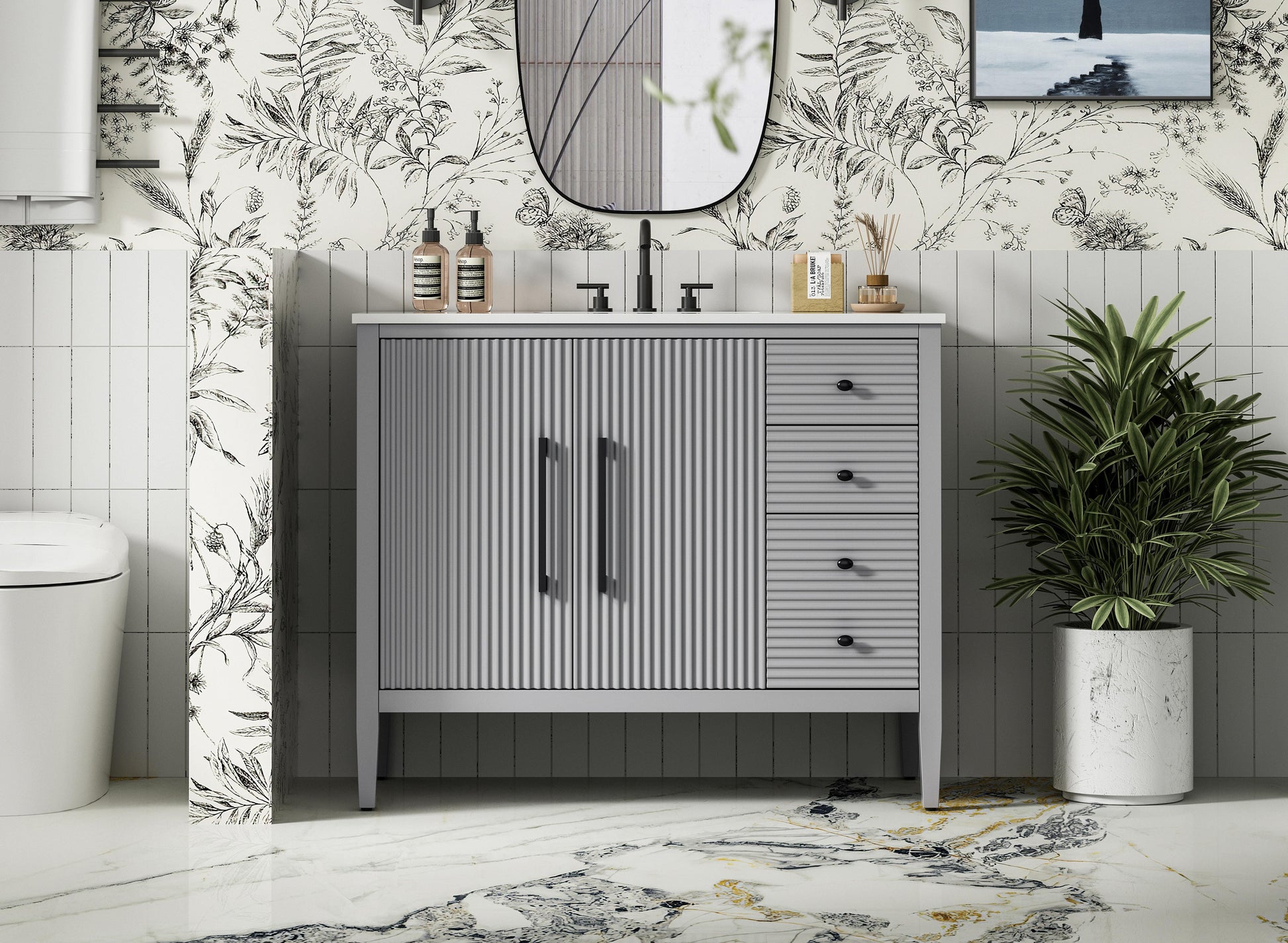 Designed with transitional elegance in mind, this bathroom vanity seamlessly blends traditional elements with modern functionality. Available in five stunning finishes, from the clean sophistication of Crisp White to the natural warmth of Honey Oak, the fluted door and drawer panels add subtle texture and charm. The white engineered marble countertop with natural veining exudes luxury, while the soft-closing doors and drawers with sleek black metal pulls offer a quiet, refined experience. Practicality is never compromised, with features like the U-shaped shelf for plumbing, deeper bottom drawer for ample storage, and pre-drilled faucet holes for easy customization. Whether your style leans modern or classic, this vanity is the perfect balance of beauty and function, appealing to customers with a taste for quality and style.