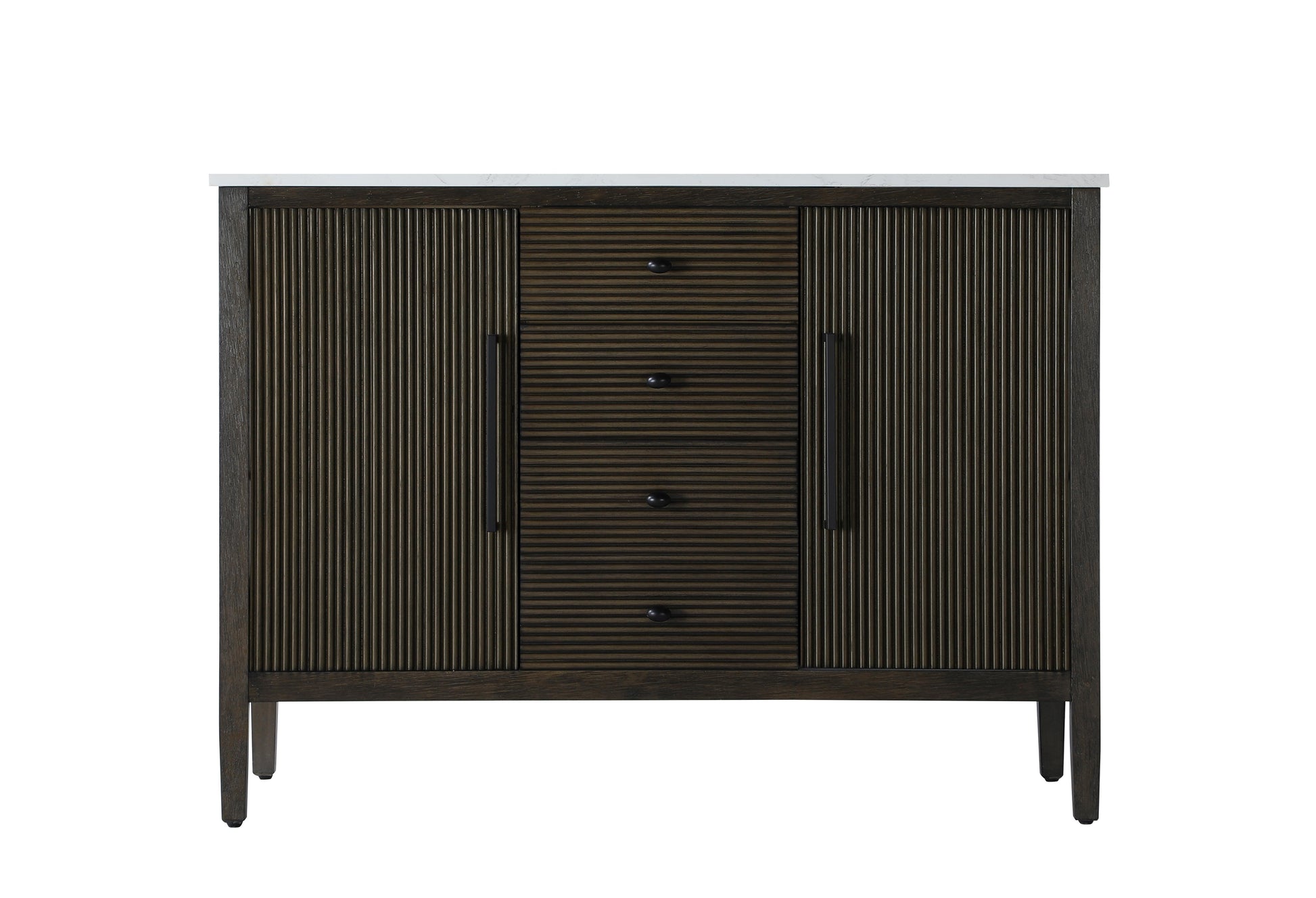 Designed with transitional elegance in mind, this bathroom vanity seamlessly blends traditional elements with modern functionality. Available in five stunning finishes, from the clean sophistication of Crisp White to the natural warmth of Honey Oak, the fluted door and drawer panels add subtle texture and charm. The white engineered marble countertop with natural veining exudes luxury, while the soft-closing doors and drawers with sleek black metal pulls offer a quiet, refined experience. Practicality is never compromised, with features like the U-shaped shelf for plumbing, deeper bottom drawer for ample storage, and pre-drilled faucet holes for easy customization. Whether your style leans modern or classic, this vanity is the perfect balance of beauty and function, appealing to customers with a taste for quality and style.