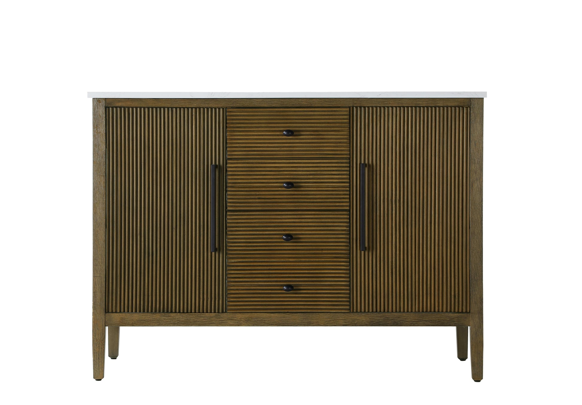 Designed with transitional elegance in mind, this bathroom vanity seamlessly blends traditional elements with modern functionality. Available in five stunning finishes, from the clean sophistication of Crisp White to the natural warmth of Honey Oak, the fluted door and drawer panels add subtle texture and charm. The white engineered marble countertop with natural veining exudes luxury, while the soft-closing doors and drawers with sleek black metal pulls offer a quiet, refined experience. Practicality is never compromised, with features like the U-shaped shelf for plumbing, deeper bottom drawer for ample storage, and pre-drilled faucet holes for easy customization. Whether your style leans modern or classic, this vanity is the perfect balance of beauty and function, appealing to customers with a taste for quality and style.