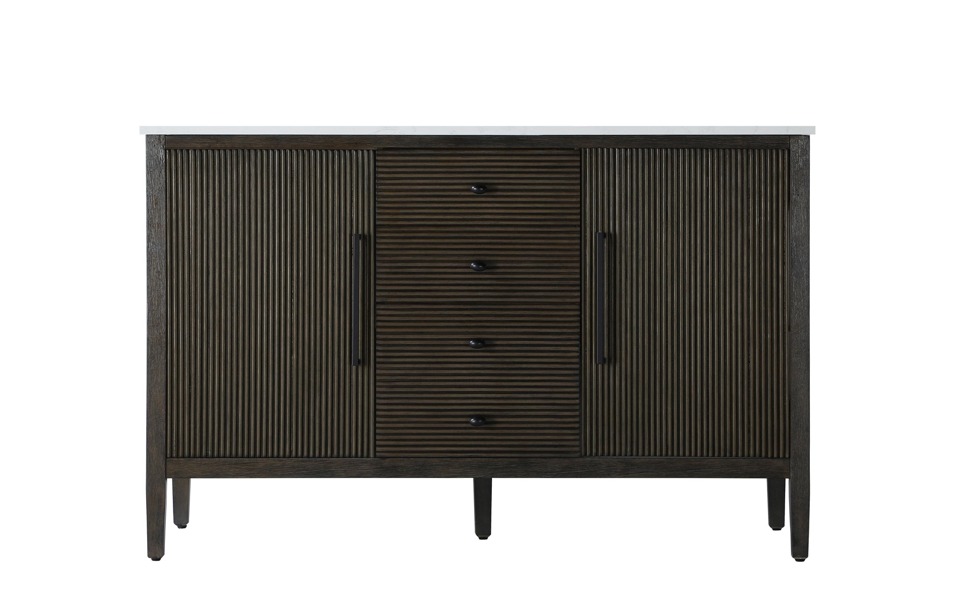 Designed with transitional elegance in mind, this bathroom vanity seamlessly blends traditional elements with modern functionality. Available in five stunning finishes, from the clean sophistication of Crisp White to the natural warmth of Honey Oak, the fluted door and drawer panels add subtle texture and charm. The white engineered marble countertop with natural veining exudes luxury, while the soft-closing doors and drawers with sleek black metal pulls offer a quiet, refined experience. Practicality is never compromised, with features like the U-shaped shelf for plumbing, deeper bottom drawer for ample storage, and pre-drilled faucet holes for easy customization. Whether your style leans modern or classic, this vanity is the perfect balance of beauty and function, appealing to customers with a taste for quality and style.