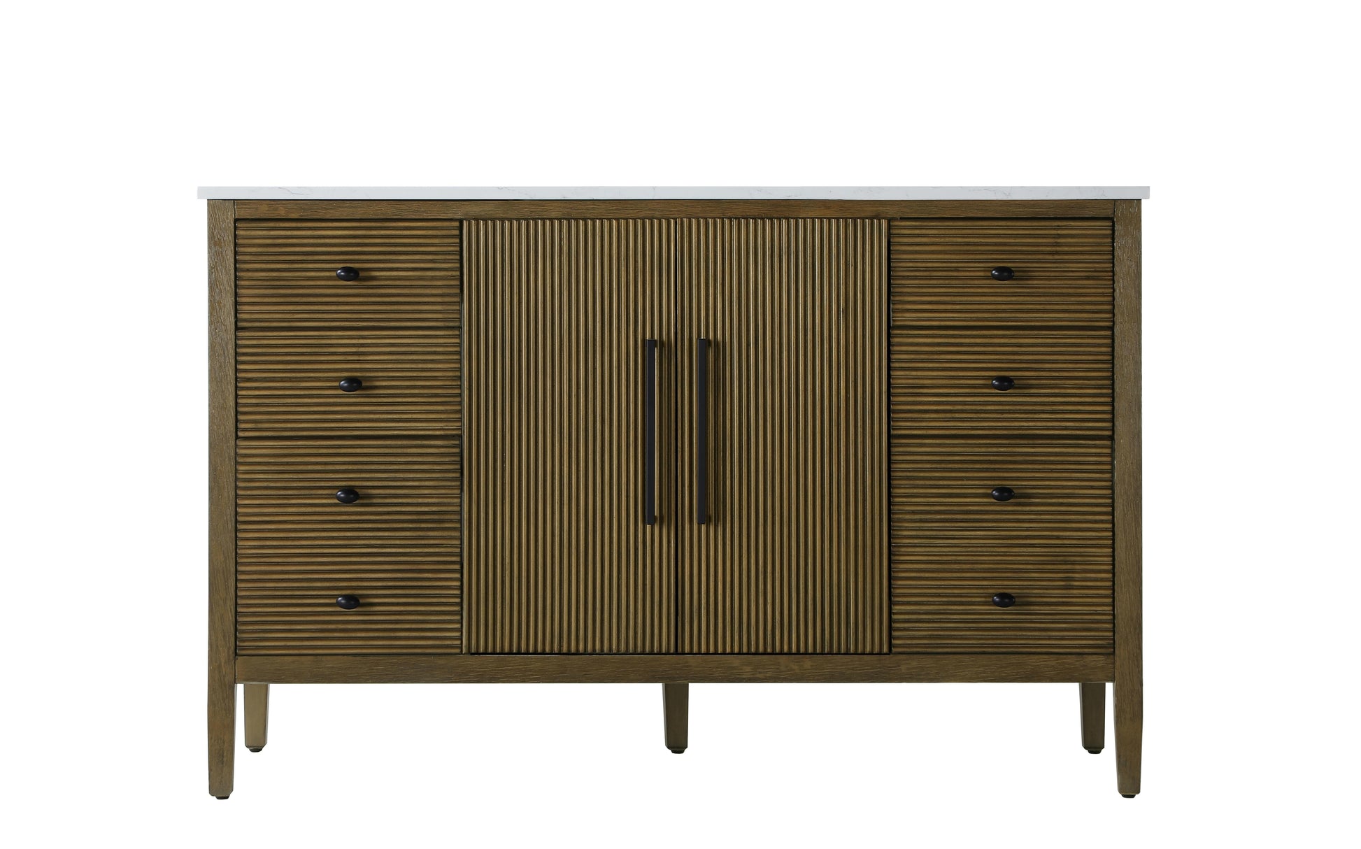 Designed with transitional elegance in mind, this bathroom vanity seamlessly blends traditional elements with modern functionality. Available in five stunning finishes, from the clean sophistication of Crisp White to the natural warmth of Honey Oak, the fluted door and drawer panels add subtle texture and charm. The white engineered marble countertop with natural veining exudes luxury, while the soft-closing doors and drawers with sleek black metal pulls offer a quiet, refined experience. Practicality is never compromised, with features like the U-shaped shelf for plumbing, deeper bottom drawer for ample storage, and pre-drilled faucet holes for easy customization. Whether your style leans modern or classic, this vanity is the perfect balance of beauty and function, appealing to customers with a taste for quality and style.