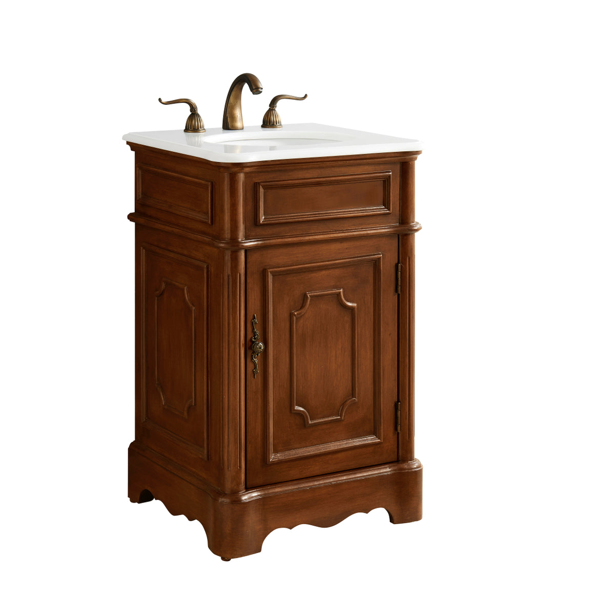 21 inch Single Bathroom vanity in Teak with ivory white engineered marble