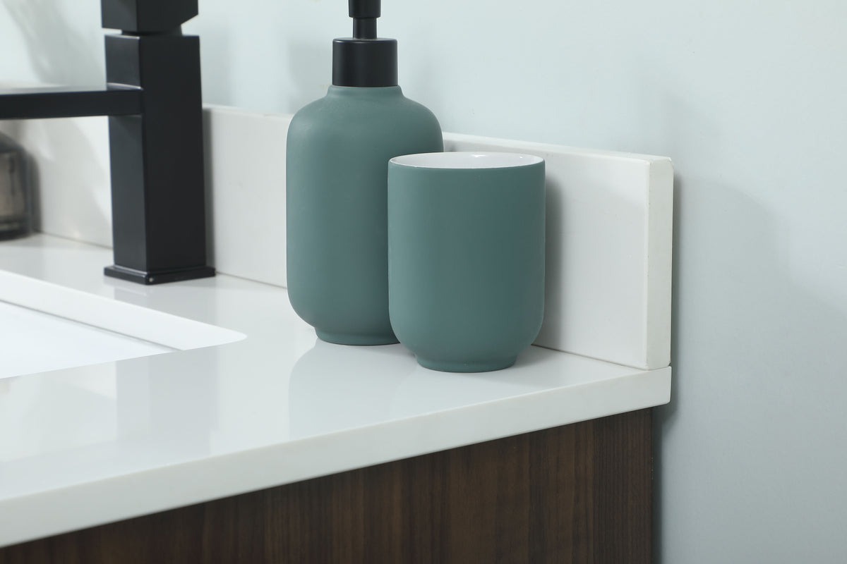 Live in modern comfort with this 30" walnut finish vanity. Dressed in a walnut and sleek black metal hardware, its contemporary style will have your bathroom or powder room elevated in industrial sophistication. The open shelf at the base and two doors reveal ample storage space for your bathroom essentials and miscellany. Clean lines create its own visual interest, adding trendy looks to your already chic room. Comes with a matching backsplash to complete the look and protects your wall.