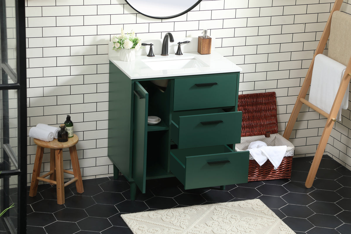 30 inch bathroom vanity in Green with backsplash