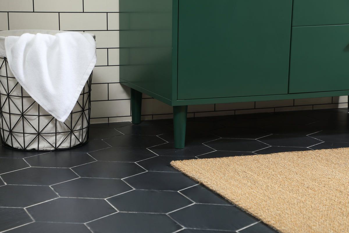 Modern sophistication is defined with the green finish and black barpulls of this vanity and slender tapered legs. Its length makes it the perfect addition to any sized home, and saves space with its storage area hidden behind the Single cabinet door and two bottom drawers. Topped with a highly durable engineered stone countertop and a porcelain undermount sink, this modern design will become your focal point of your bathroom. Equipped with soft-closing drawer and doors adds a quiet functional touch.