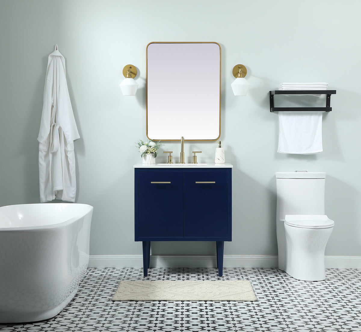 Delve into a world of minimalistic fashion and contemporary styling with this midcentury modern vanity. The clean lines anchors the design, while the straight tapered cylinder legs add subtle interest. Bar pull handle adorns the soft closing door hiding the base of the rectangular porcelain sink and letting you store your bathroom necessities and toiletries. Whether you want to use this as a floating vanity or a freestanding vanity, the choice is yours. The durable ivory white engineered marble countertop complements the manufactured wood base vanity and is built to last.