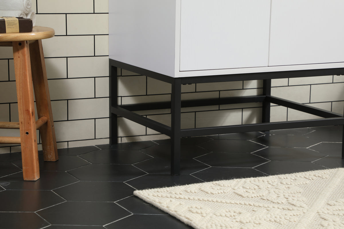 This vanity is a sleek-looking piece of bathroom furniture that is easy to incorporate into your design scheme. The cabinet features a smooth door panel with an oversized steel handle and soft close hinges provide ample room for accessories. Constructed of engineered wood, the powder-coated metal rod legs are an urban industrial look that we love. Minor assembly of the metal legs needed to get this vanity up and running.