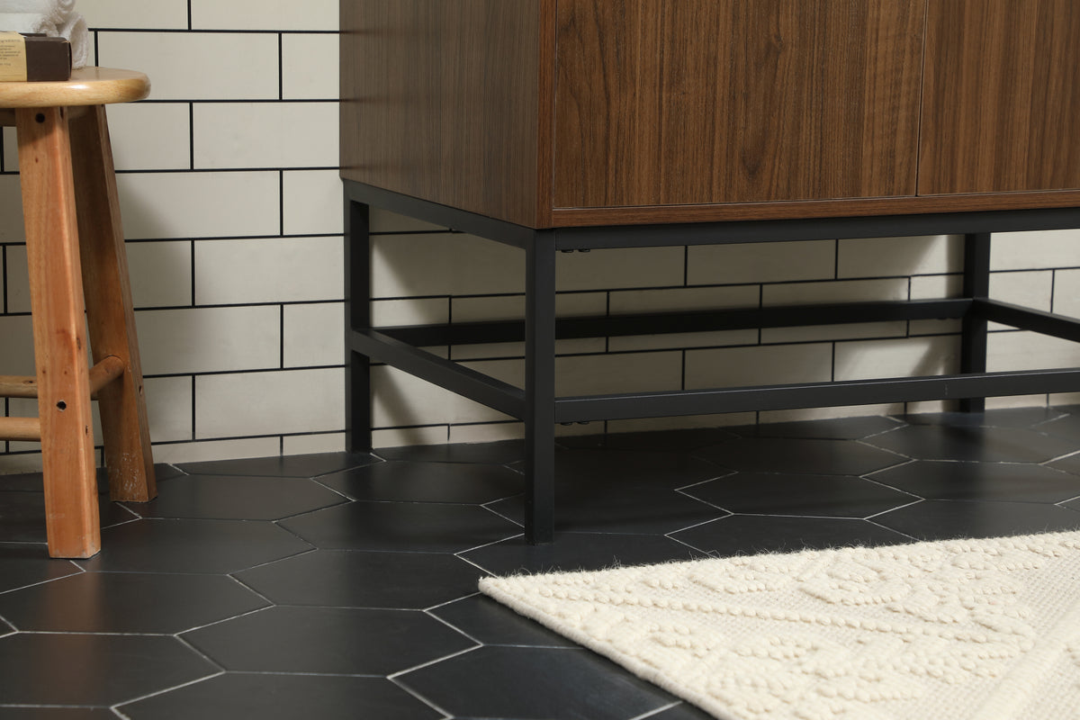 This vanity is a sleek-looking piece of bathroom furniture that is easy to incorporate into your design scheme. The cabinet features a smooth door panel with an oversized steel handle and soft close hinges provide ample room for accessories. Constructed of engineered wood, the powder-coated metal rod legs are an urban industrial look that we love. Minor assembly of the metal legs needed to get this vanity up and running.