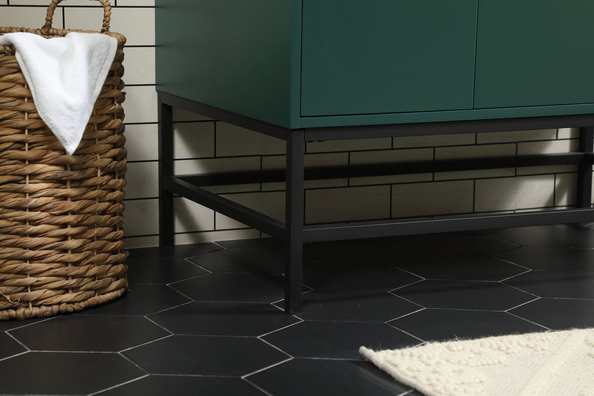 This vanity is a sleek-looking piece of bathroom furniture that is easy to incorporate into your design scheme. The cabinet features a smooth door panel with an oversized steel handle and soft close hinges provide ample room for accessories. Constructed of engineered wood, the powder-coated metal rod legs are an urban industrial look that we love. Minor assembly of the metal legs needed to get this vanity up and running.
