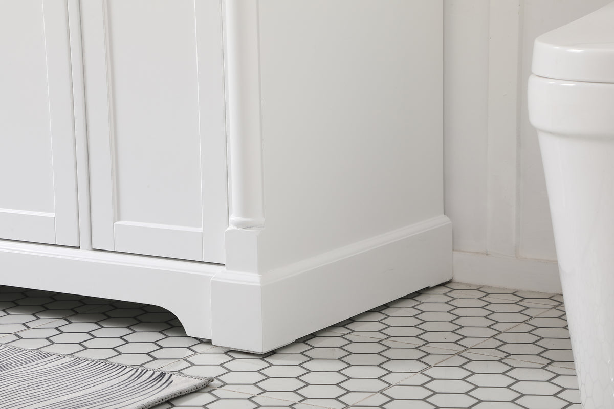 Make the most of your space with this traditional style bathroom vanity. Its traditional style is able to complement many aesthetics, natural marble countertop, and the round brushed nickel knobs that sits above the soft closing doors, allowing you to store an assortment of bathroom essentials. The lower shelf makes it the perfect space to hold new towels for your guests. This compact vanity ensures both form and function in your bathroom or powder room for you and your guests.
