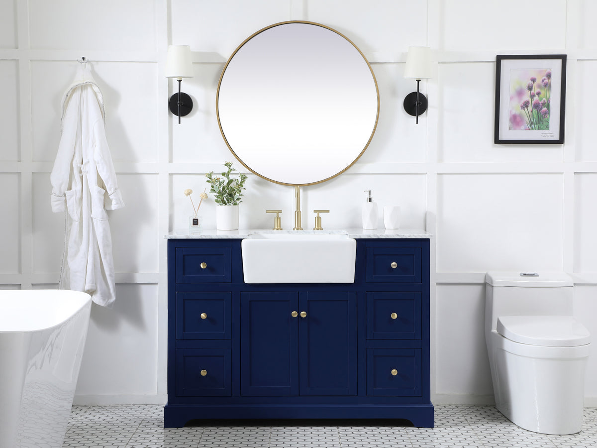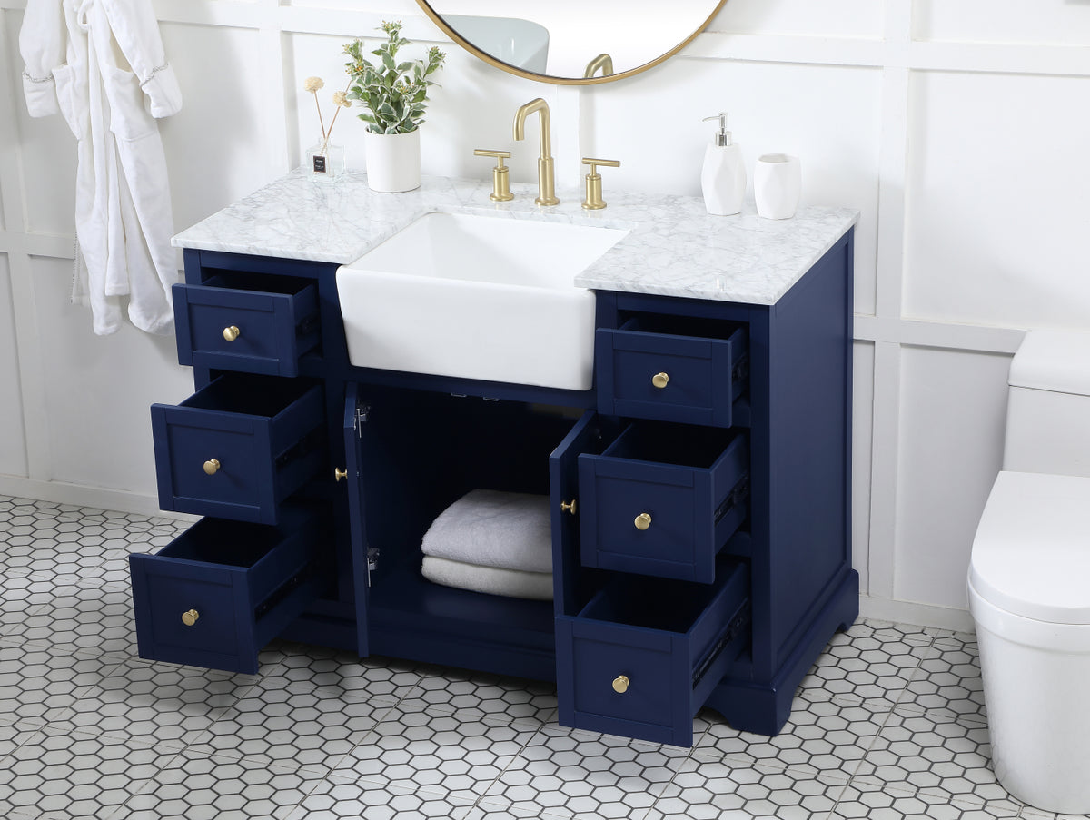 Make the most of your space with this farmhouse style bathroom vanity. Complements well with its beautiful finish, carrara white marble countertop, and the contemporary slender handle bar that sits on the functional drawers with soft closing mechanism, allowing you to store an assortment of bathroom essentials. The lower shelf makes it the perfect space to hold new towels for your guests. This stylish vanity ensures both form and function in your bathroom for you and your guests.