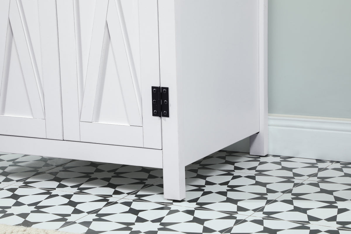Reminiscent of barn doors, the 2 door cabinet adds both stylistic charm and function with its plethora of storage options for all your bathroom essentials. Whether for your bathroom or the guests', everyone will marvel at its classic look for traditional and farmhouse aesthetics. A slab of engineered marble rounds out the piece up top, as well as the porcelain under mount sink and predrilled faucet holes. This vanity arrives fully assembled.