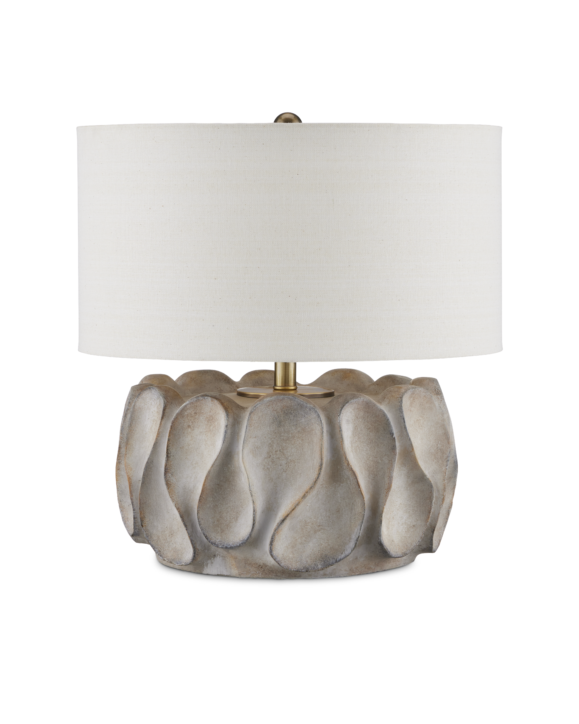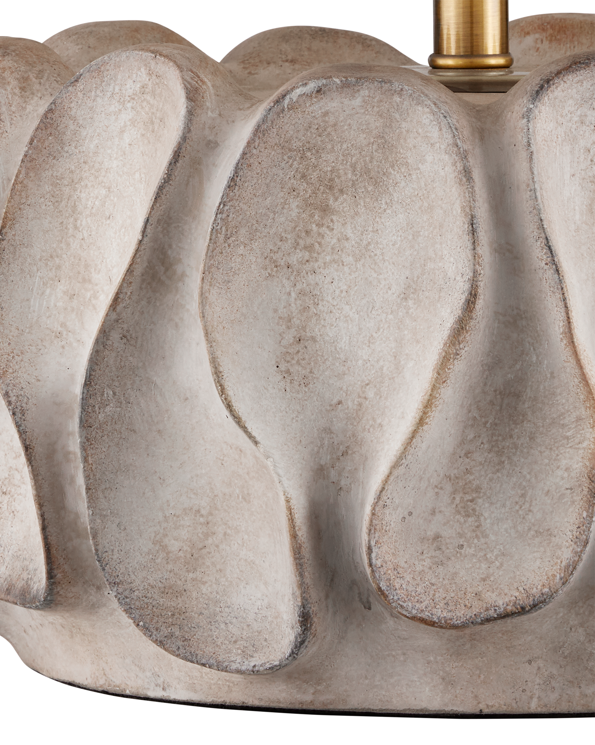 The Weststrand Table Lamp has a flowing shape packed with personality. The spoon-like swells pressed into cast concrete create an artistic statement because they are far from uniform, which adds interest to the squashed shape of the rugged-looking gray lamp. The surface has a wonderful texture to it, and the light antique brass finish on the hardware draws out similar tones along the surface of the cement.